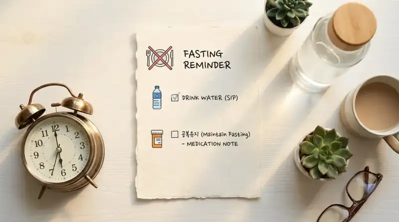 실전 꿀팁 몇 가지 드릴게요. 검진 전날 밤 9시 이후 금식은 기본이고, 물도 검진 당일 아침에는 최소한만 드세요. 혈압약 같은 필수 복용 약은 소량의 물과 함께 드셔도 되지만, 검진기관에 미리 확인하는 게 안전합니다. 그리고 검진 결과는 보통 2~3주 후에 우편이나 앱으로 오는데, 의사와의 결과 상담까지가 검진 과정이에요. 결과지만 받아보고 끝내는 분들이 많은데, 수치 해석은 전문가한테 듣는 게 맞습니다.