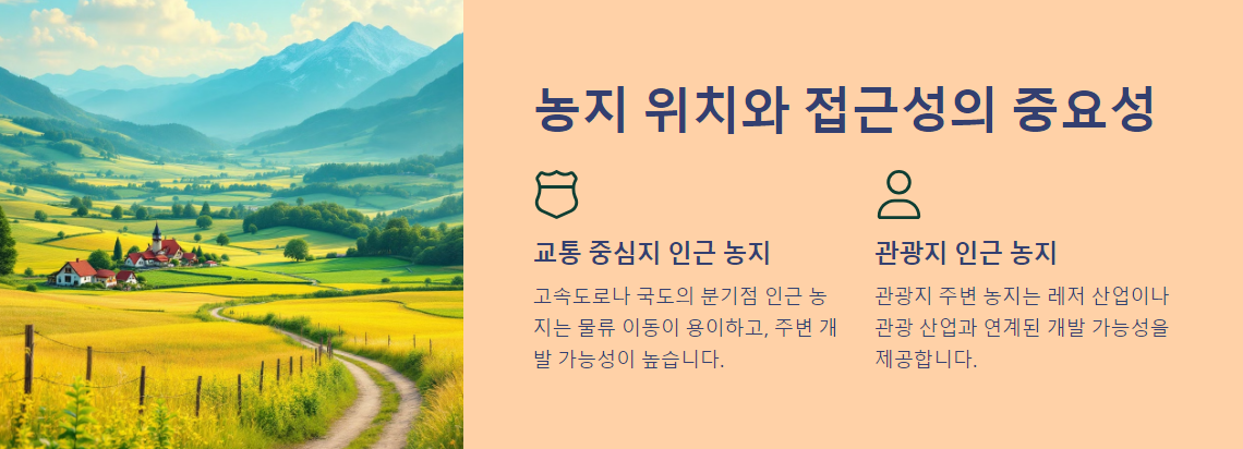 농지의 위치는 장기적인 가치와 투자 수익에 직결됩니다. 접근성이 좋고 주요 지역과 가까운 농지는 투자 성공 가능성을 높입니다.