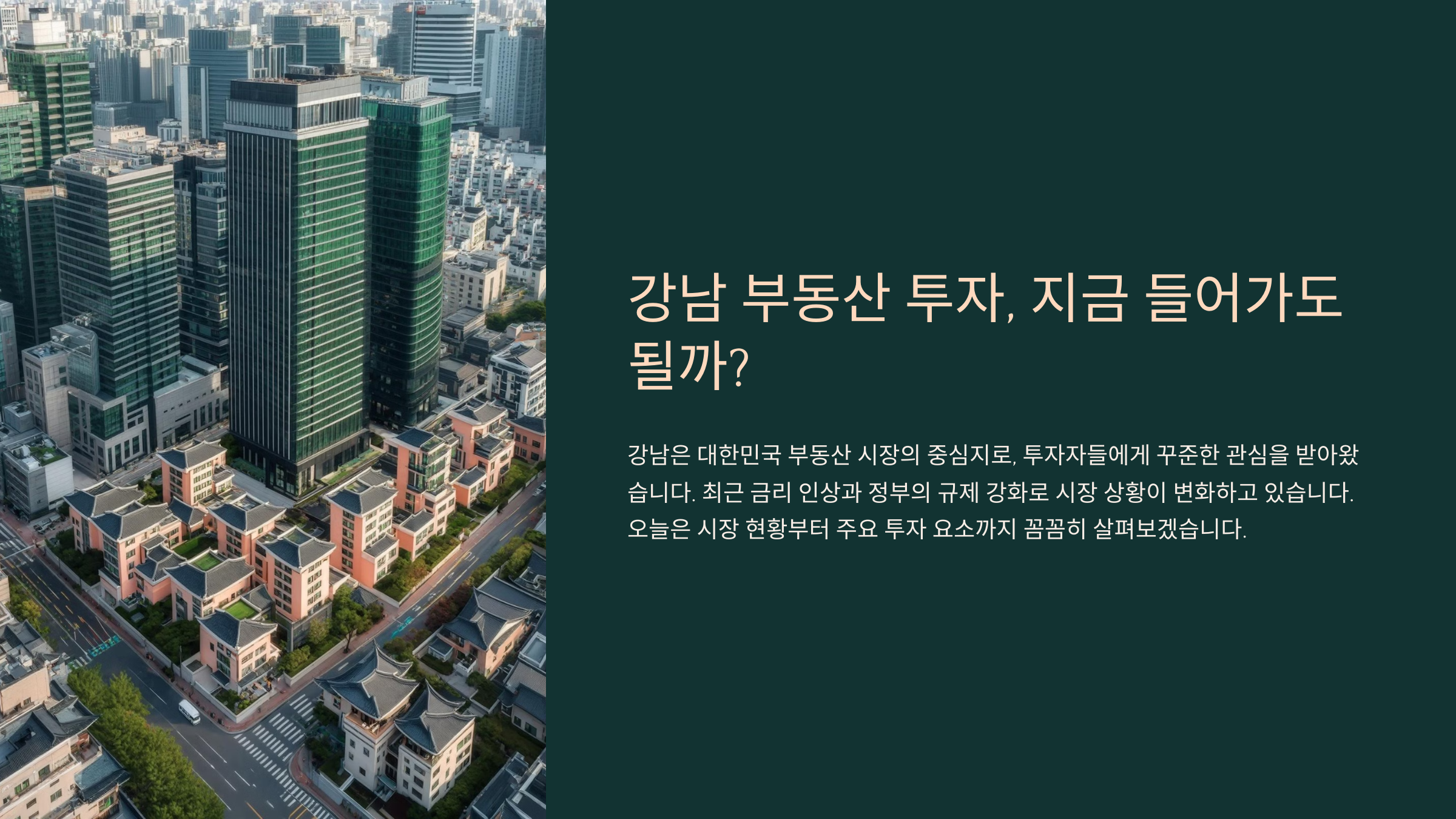 강남은 대한민국 부동산 시장의 중심지로, 투자자들에게 꾸준한 관심을 받아왔어요. 하지만 최근 금리 인상과 정부의 규제 강화로 시장 상황이 변화하고 있죠. 그렇다면 지금 시점에 강남 부동산에 투자하는 것이 과연 좋은 선택일까요? 오늘은 시장 현황부터 주요 투자 요소까지 꼼꼼히 살펴볼게요. 🏡