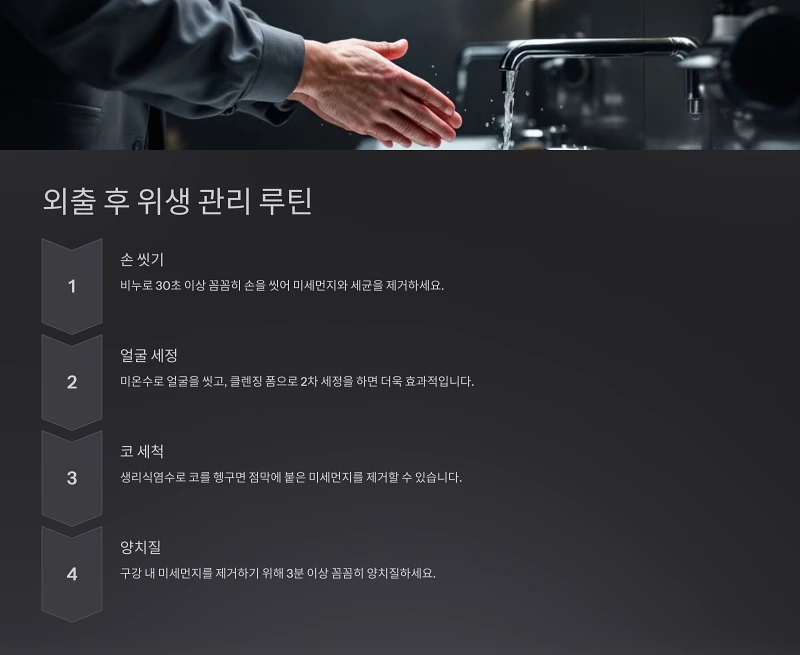 미세먼지가 심한 날 외출했다면 귀가 후 철저한 위생 관리를 실천해야 합니다.