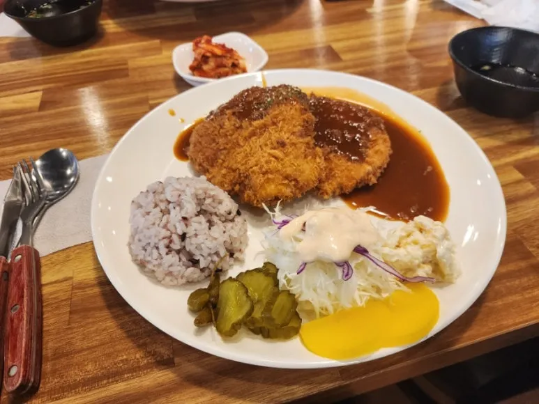 아포 수제돈가스 맛집은 두툼하고 바삭한 수제돈가스의 매력을 제대로 느낄 수 있는 곳입니다. 돈가스뿐만 아니라 쟁반 야채 쫄면, 우동 같은 사이드 메뉴도 함께 즐길 수 있어 다양하게 먹는 재미가 있어요. 든든하고 만족스러운 한 끼를 원하시는 분들께 강력 추천드립니다!