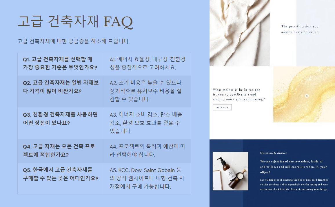 Q4. 고급 자재는 모든 건축 프로젝트에 적합한가요?