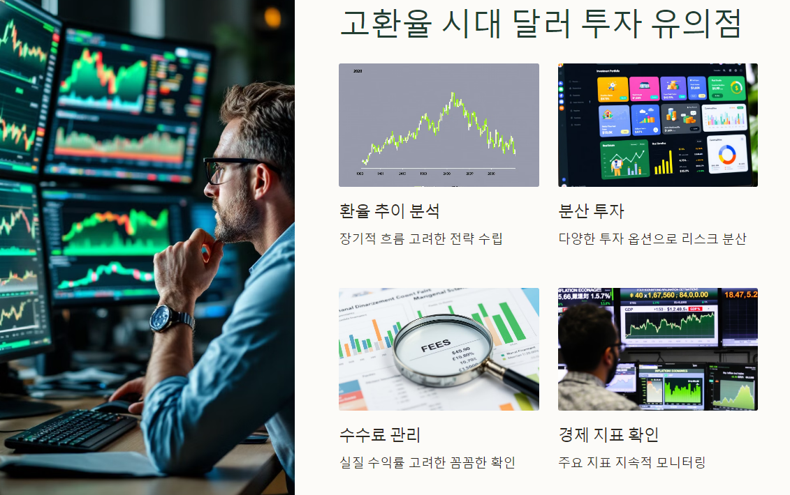 단순히 환율 변화를 지켜보는 것에서 벗어나 이를 투자 기회로 삼는 전략적 사고가 요구됩니다. 고환율은 위험을 동반하지만, 동시에 새로운 투자 가능성을 열어주는 시기이기도 합니다. 이번 글에서는 안정성과 수익성을 동시에 추구할 수 있는 달러 투자 전략을 다각도로 분석하고 실행 가능한 방법을 제시합니다.