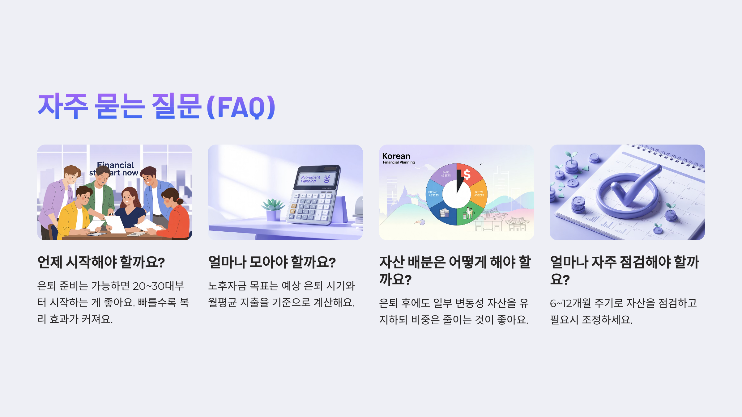 A1. 가능하면 20~30대부터 준비하는 게 좋아요.