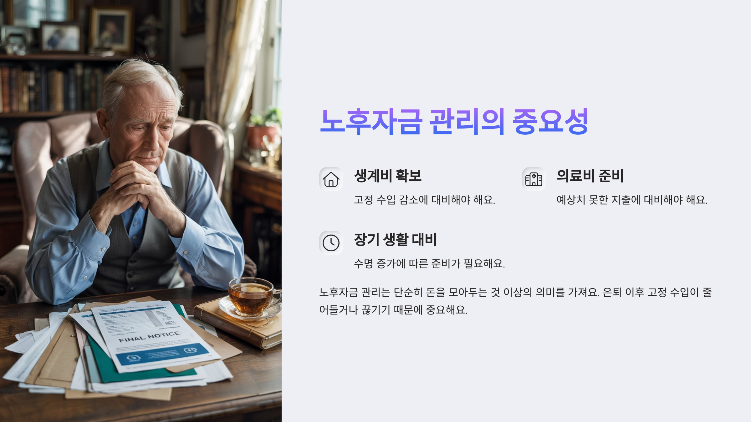 노후자금 관리는 단순히 돈을 모아두는 것 이상의 의미를 가져요. 은퇴 이후 고정 수입이 줄어들거나 끊기기 때문에, 평소에 쌓아둔 자금이 생계와 의료비, 여가 생활을 모두 책임져야 해요. 🏡