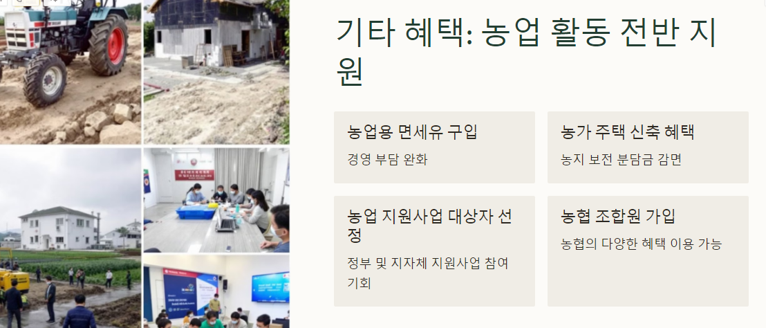 기타 혜택: 농업 활동과 생활의 전반적인 지원