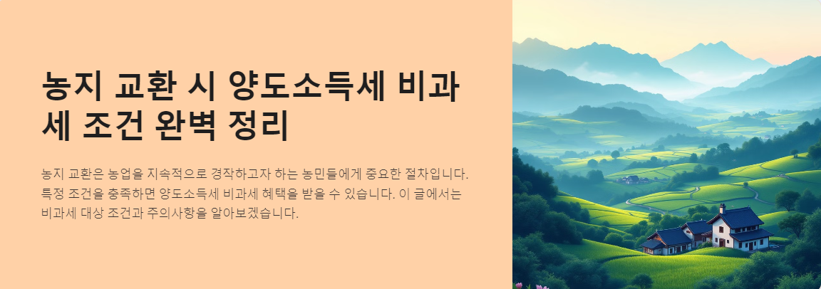이 글에서는 농지 교환 시 양도소득세 비과세 대상이 되는 조건과 관련 주의사항을 구체적으로 알아보겠습니다.