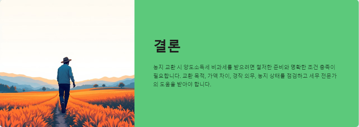 농지 교환을 계획 중이라면, 위 내용을 참고하여 신중하게 준비하시기 바랍니다.