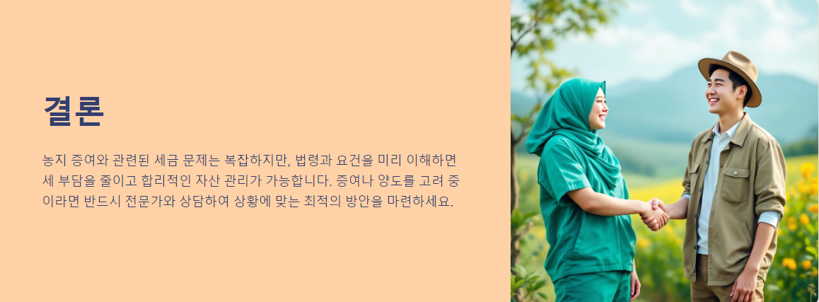 농지 증여와 관련된 세금은 복잡하므로 전문가와 상담하는 것이 유리합니다.