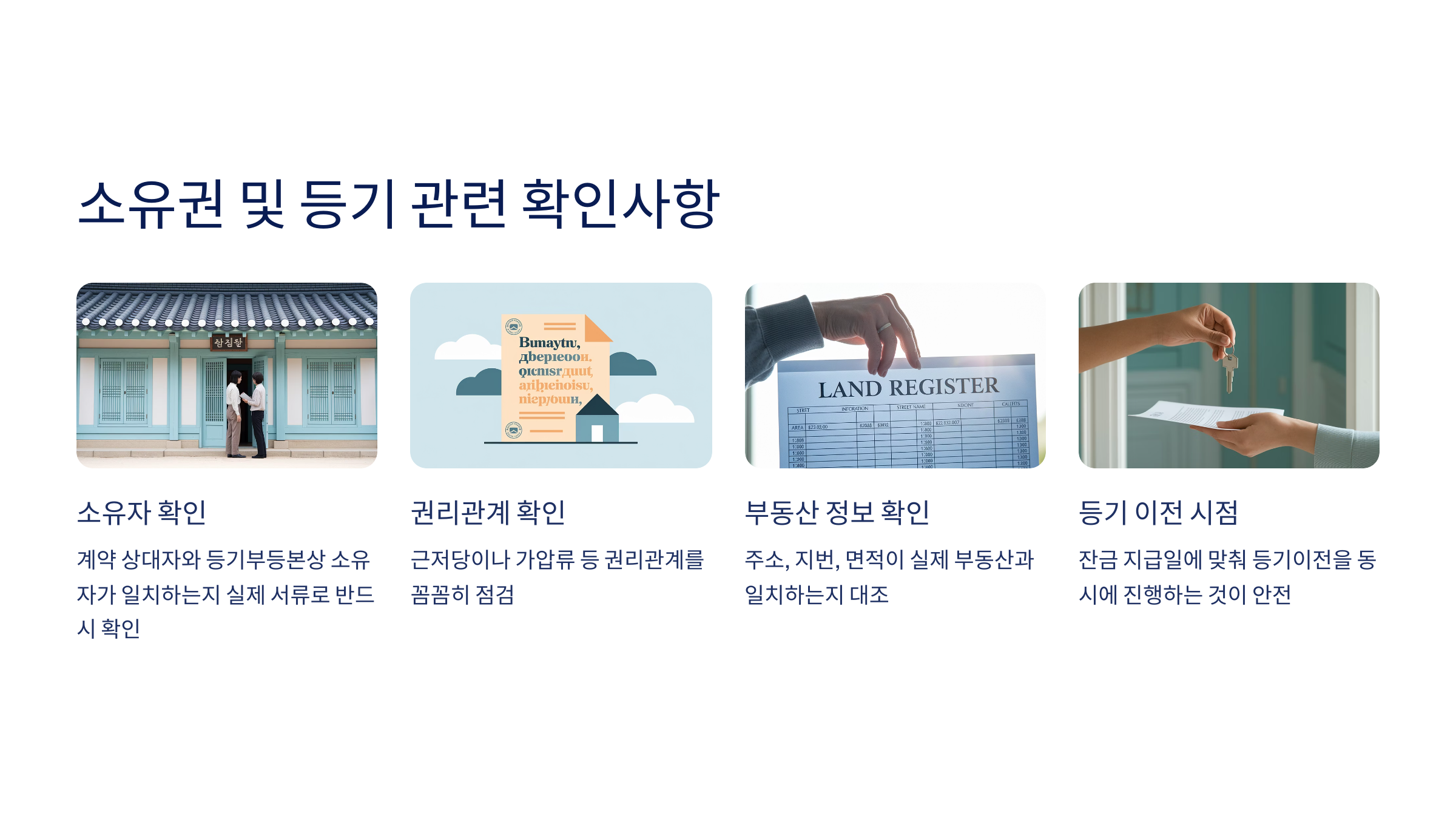 세 번째로는 ‘잔금 지급과 소유권 이전’의 관계를 명확히 해야 해요. 일반적으로 잔금을 지급함과 동시에 등기 이전이 이뤄지도록 하는 게 안전해요. “잔금일 당일, 등기서류 일체를 인도받기로 한다”는 식으로 명시하면 거래가 깔끔하게 마무리된답니다.