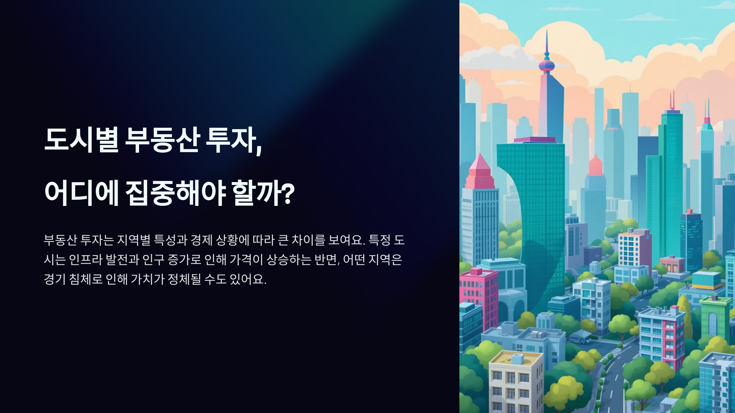 🏡 부동산 투자를 고려할 때, 도시 선택은 가장 중요한 요소 중 하나예요. 인프라 발전, 인구 증가, 산업 활성화 등이 투자 가치에 큰 영향을 미치죠. 현재 투자자들 사이에서 주목받는 도시들을 알아볼까요?