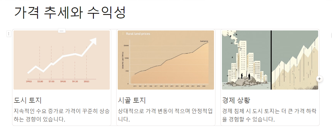 도시 토지의 경우, 급격한 개발로 인해 가격 상승 속도가 빠릅니다.