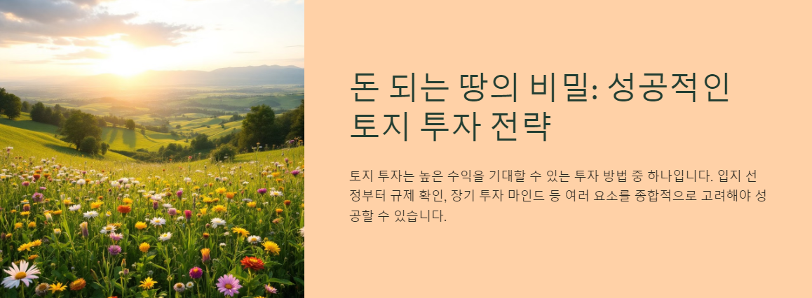 입지 선정부터 규제 확인, 장기 투자 마인드 등 여러 요소를 종합적으로 고려해야 성공할 수 있습니다. 이 글에서는 돈 되는 땅을 찾는 비결과 토지 투자 시 알아두어야 할 중요한 팁을 공유합니다.