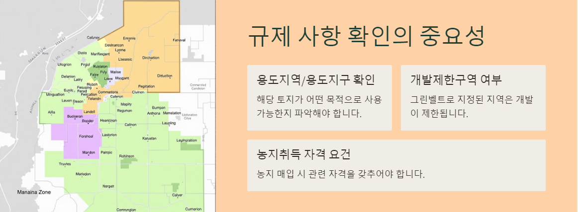 토지 투자에서 규제를 간과하면 큰 손해를 볼 수 있습니다. 토지의 사용 용도나 개발 제한 여부를 사전에 철저히 검토해야 합니다.