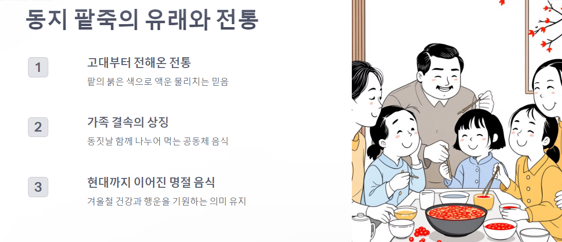 오늘날 팥죽은 가족과 함께 나누는 정겨운 음식으로 기억됩니다.