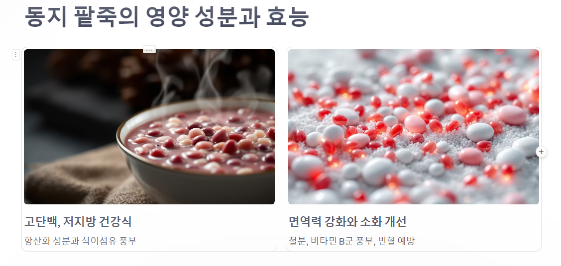 팥죽은 따뜻한 성질로 몸을 데워 겨울철 추위에 효과적입니다.
