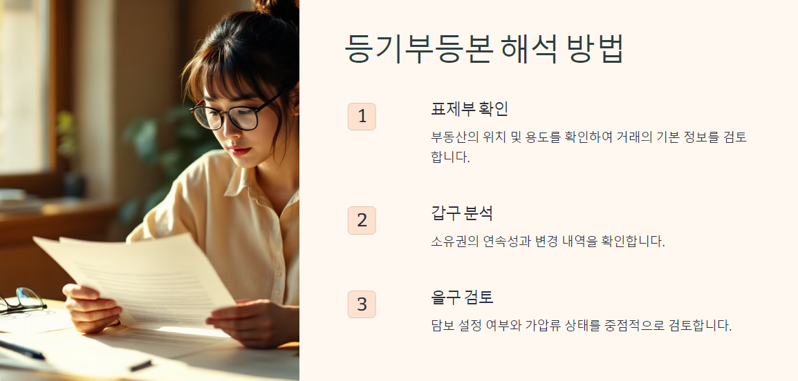 등기부등본 해석은 정보를 분석하고 법률적 의미를 파악하는 과정입니다.
