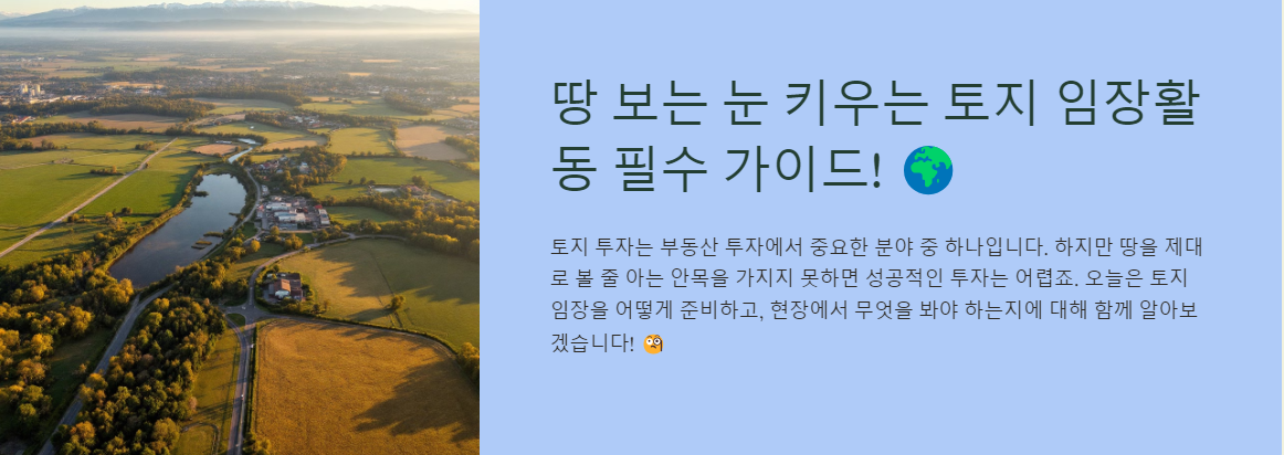 하지만 땅을 제대로 볼 줄 아는 안목을 가지지 못하면 성공적인 투자는 어렵죠. 오늘은 토지 임장을 어떻게 준비하고, 현장에서 무엇을 봐야 하는지에 대해 함께 알아보겠습니다! 🧐