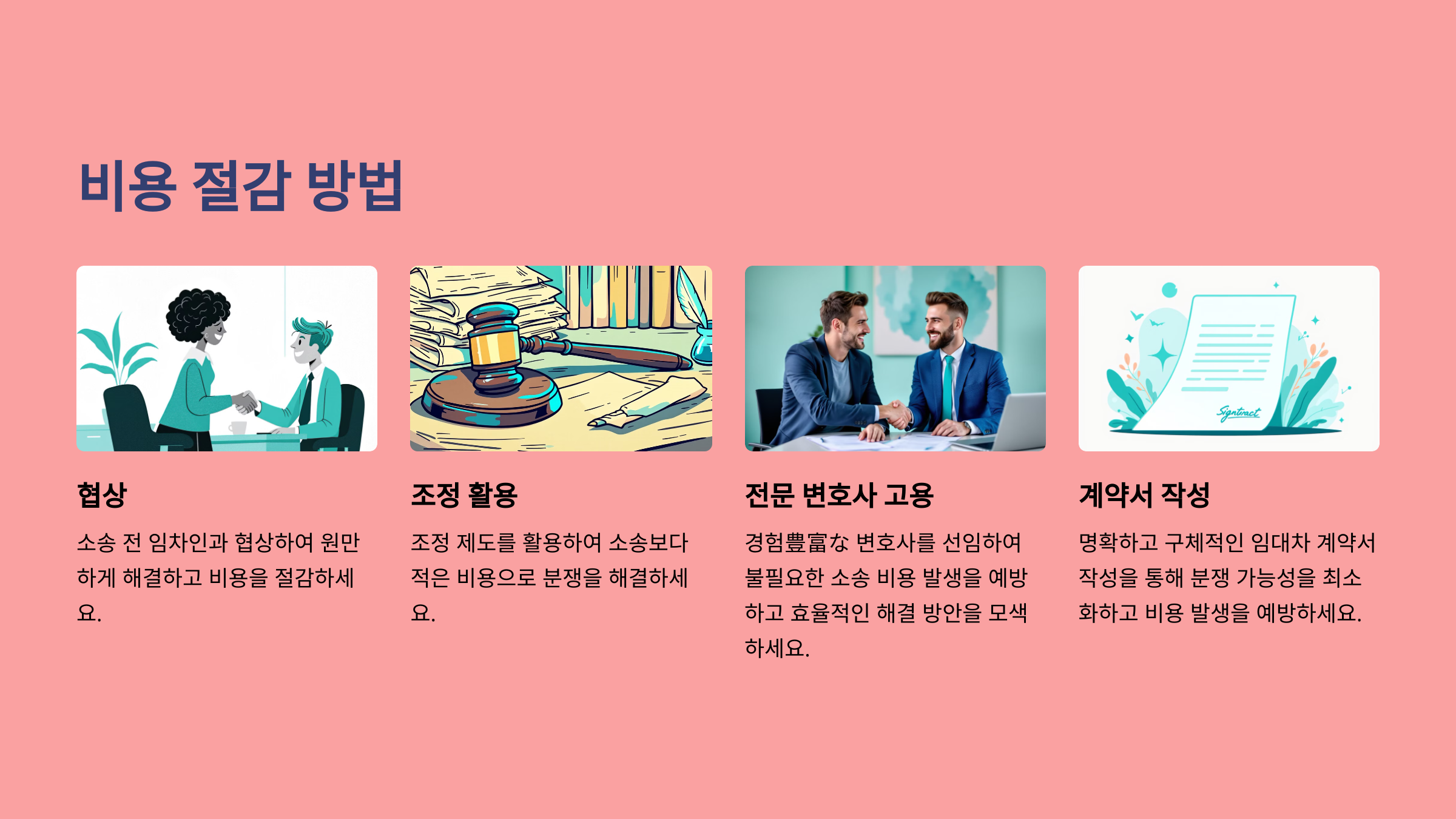 세 번째로는, 명도 소송 관련 경험이 풍부한 전문 변호사를 고용하는 것이에요. 변호사 선임 비용은 초기에는 부담으로 느껴질 수 있지만, 소송이 길어질 경우 더 많은 비용이 발생할 수 있으므로, 처음부터 전문 변호사를 선임하는 것이 장기적으로는 비용 절감에 도움이 돼요.