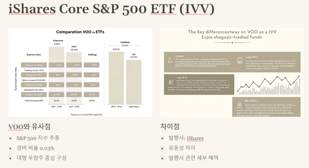 IVV는 S&P 500 지수를 그대로 따라가기 때문에 대형주 투자에 관심 있는 분들에게 적합합니다. VOO와 IVV의 차이점은 주로 투자자 선호도에 따른 유동성 차이와 발행사 관련 세부 혜택에 있습니다.
