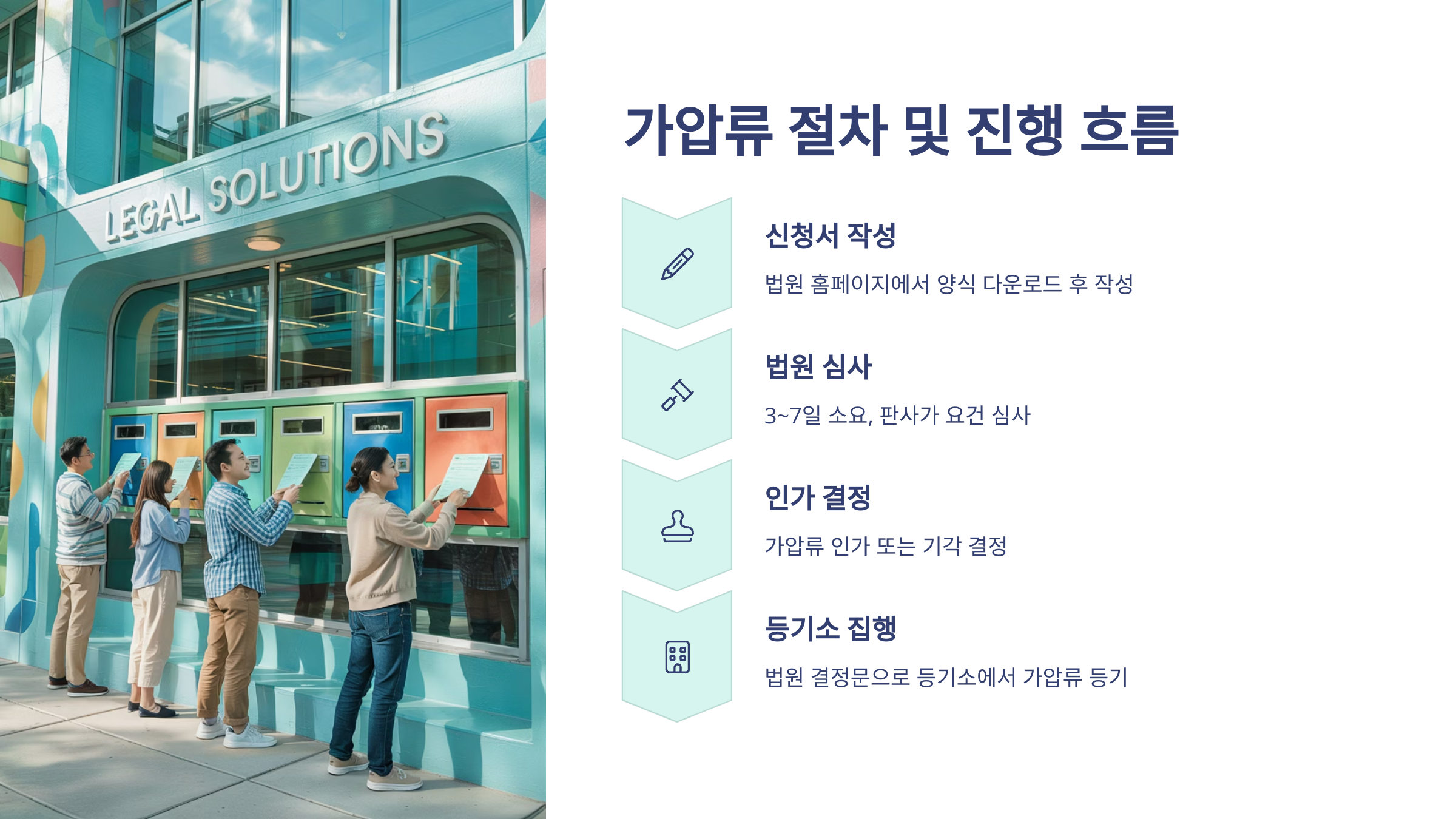 가압류 신청 요건이 갖춰졌다면, 이제 실제로 어떻게 진행하는지가 궁금할 거예요. 다음 섹션에서는 접수부터 법원의 결정까지의 전 과정을 하나씩 정리해줄게요. 👣