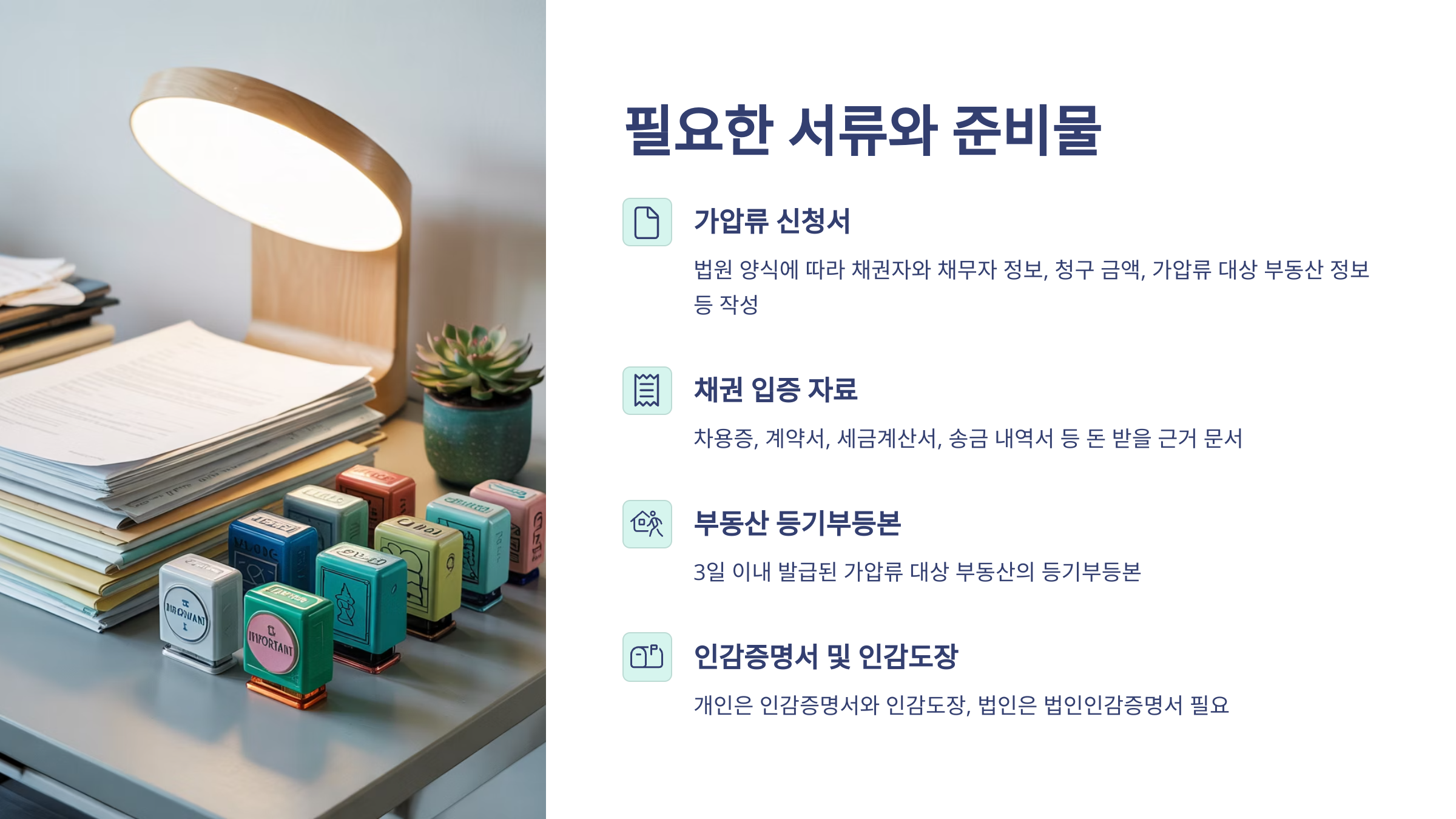 부동산 가압류 신청을 하려면 다양한 서류를 미리 준비해야 해요. 서류가 부족하거나 누락되면 법원에서 신청을 반려하거나 기각할 수 있어서 꼼꼼한 준비가 무엇보다 중요해요. 특히 요즘엔 전자소송으로 제출하는 경우도 많기 때문에, 스캔 파일과 원본을 모두 갖추는 게 좋아요.