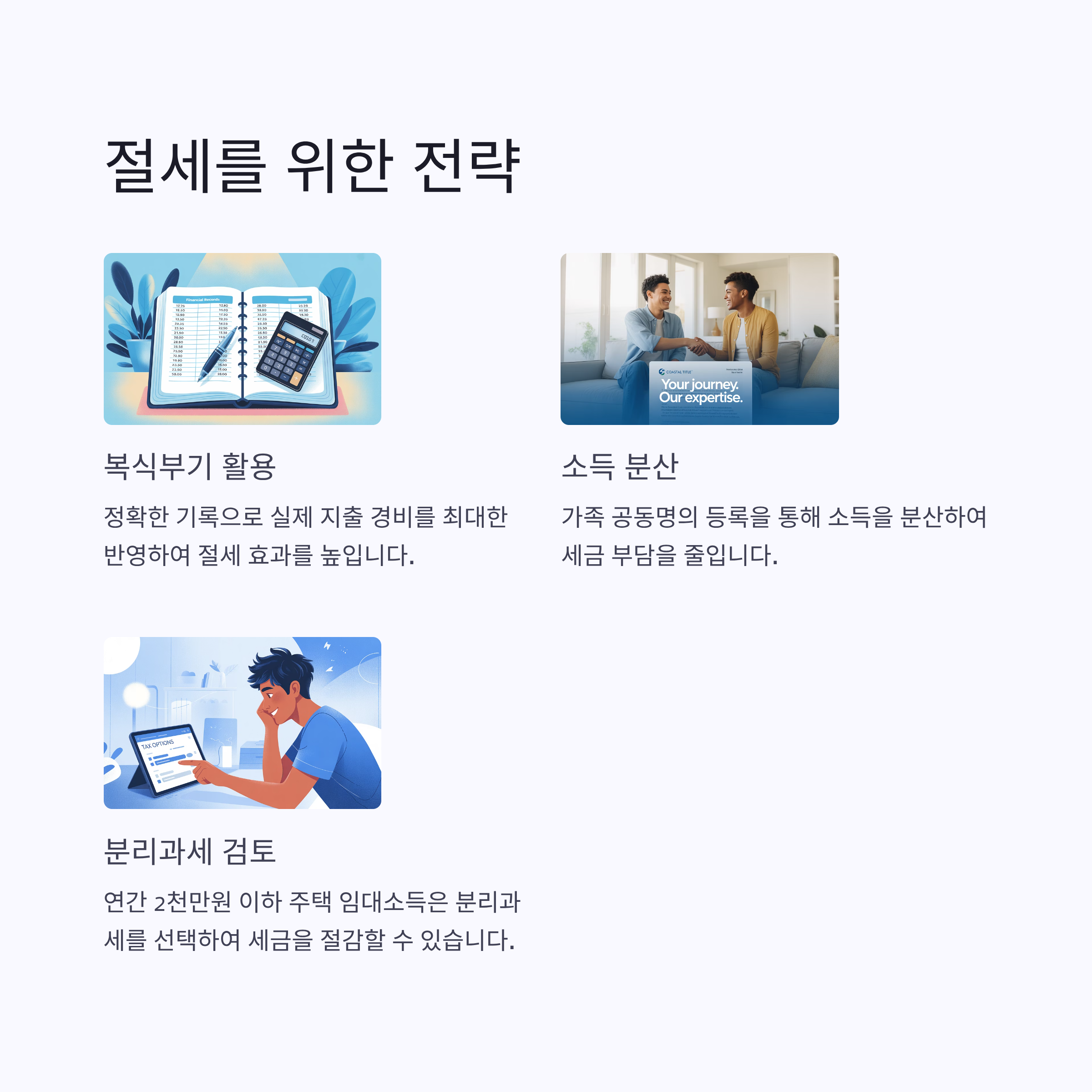 그 외에도 개인연금, 기부금, 의료비, 교육비 등 인적 공제 항목도 절세에 도움을 줄 수 있어요. 부동산 소득 외에 다른 수입이 많을수록 이 공제 항목들이 큰 역할을 한답니다.