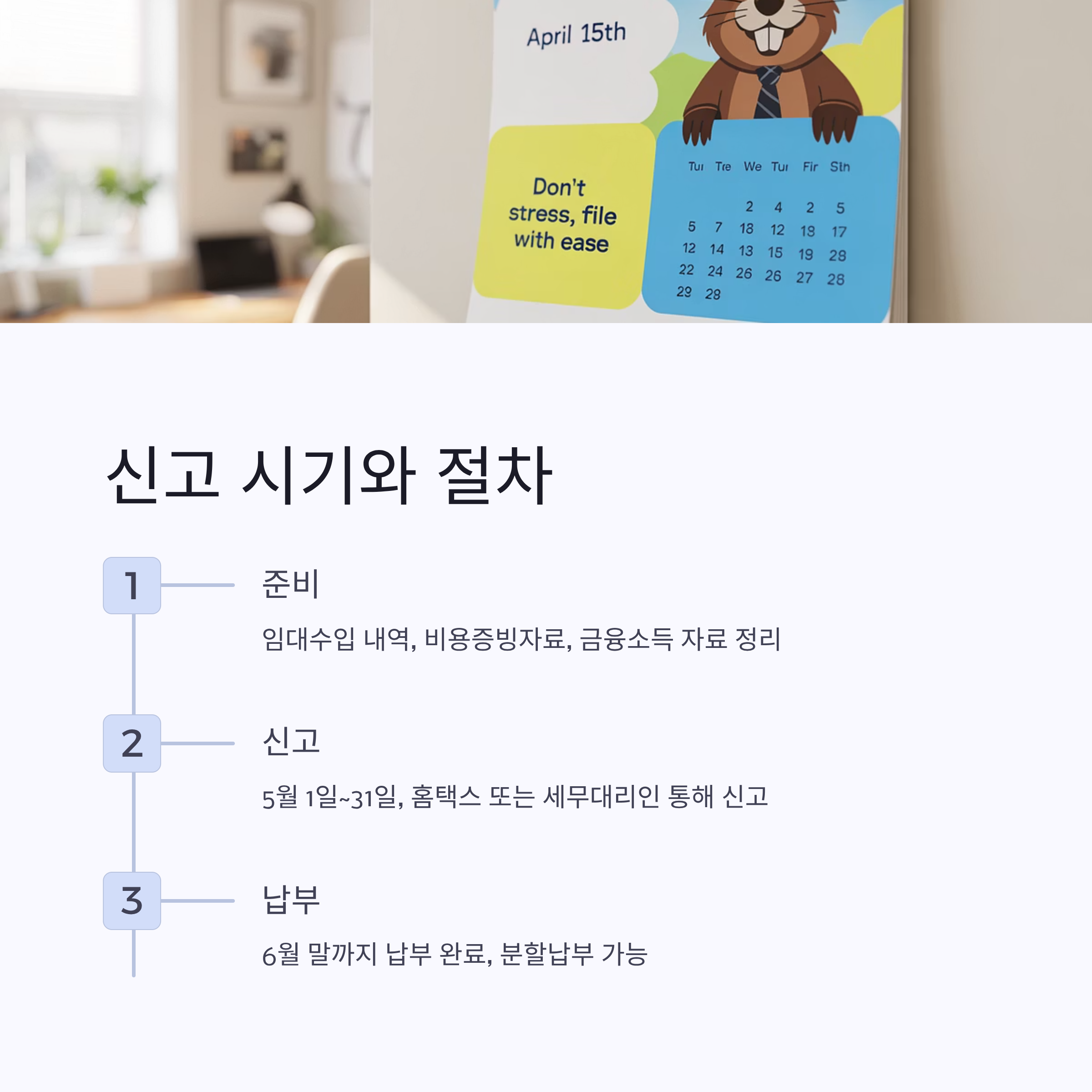 종합소득세는 매년 5월 1일부터 5월 31일까지가 신고 기간이에요. 이 시기를 놓치면 자동으로 가산세 대상이 되기 때문에 미리미리 준비하는 게 좋아요.