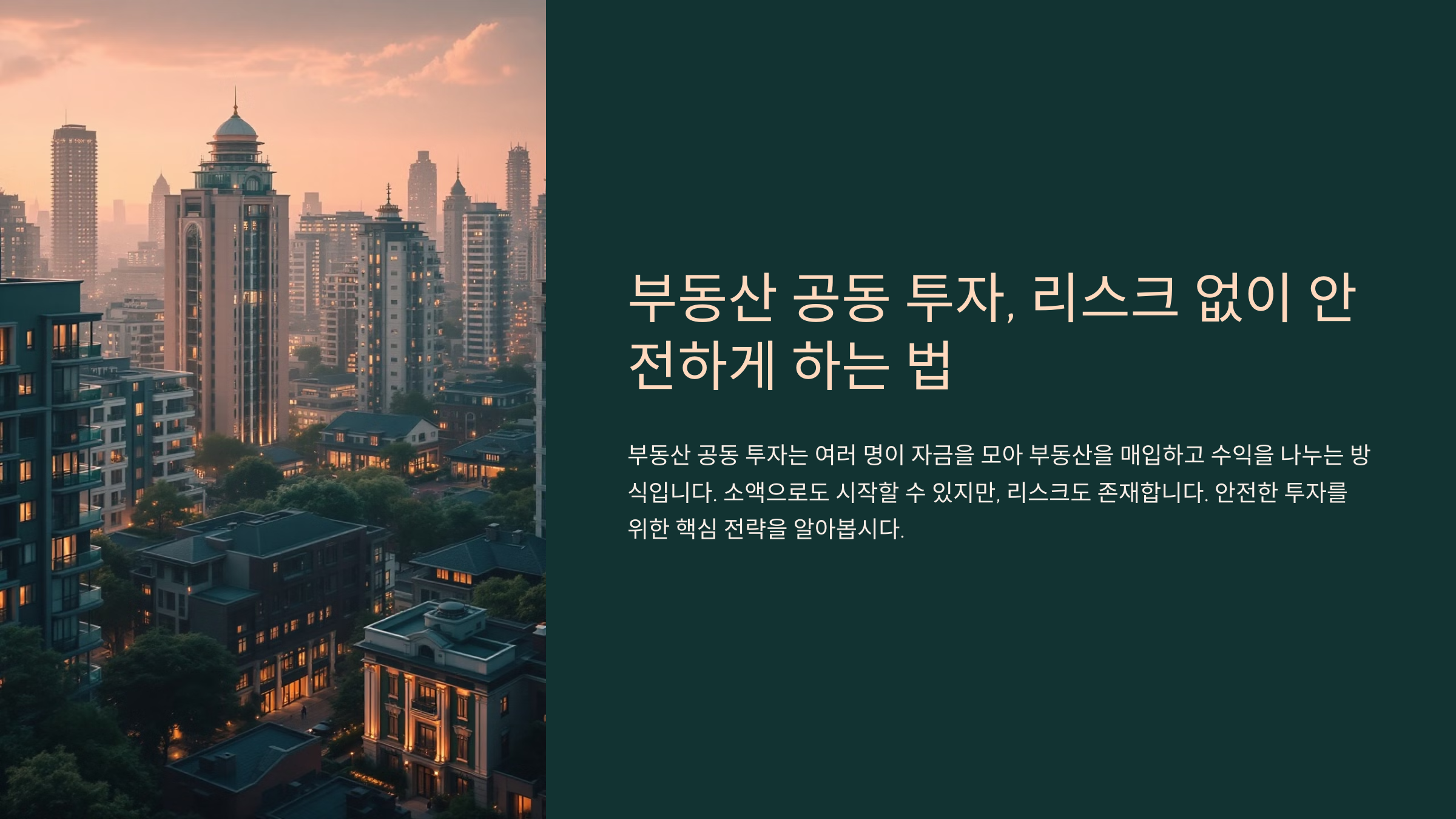 오늘은 부동산 공동 투자의 개념과 장점, 주요 리스크, 그리고 안전하게 공동 투자하는 방법까지 자세히 알아볼게요. 제대로 준비하면 소액으로도 부동산 투자를 시작할 수 있답니다! 🏡📈