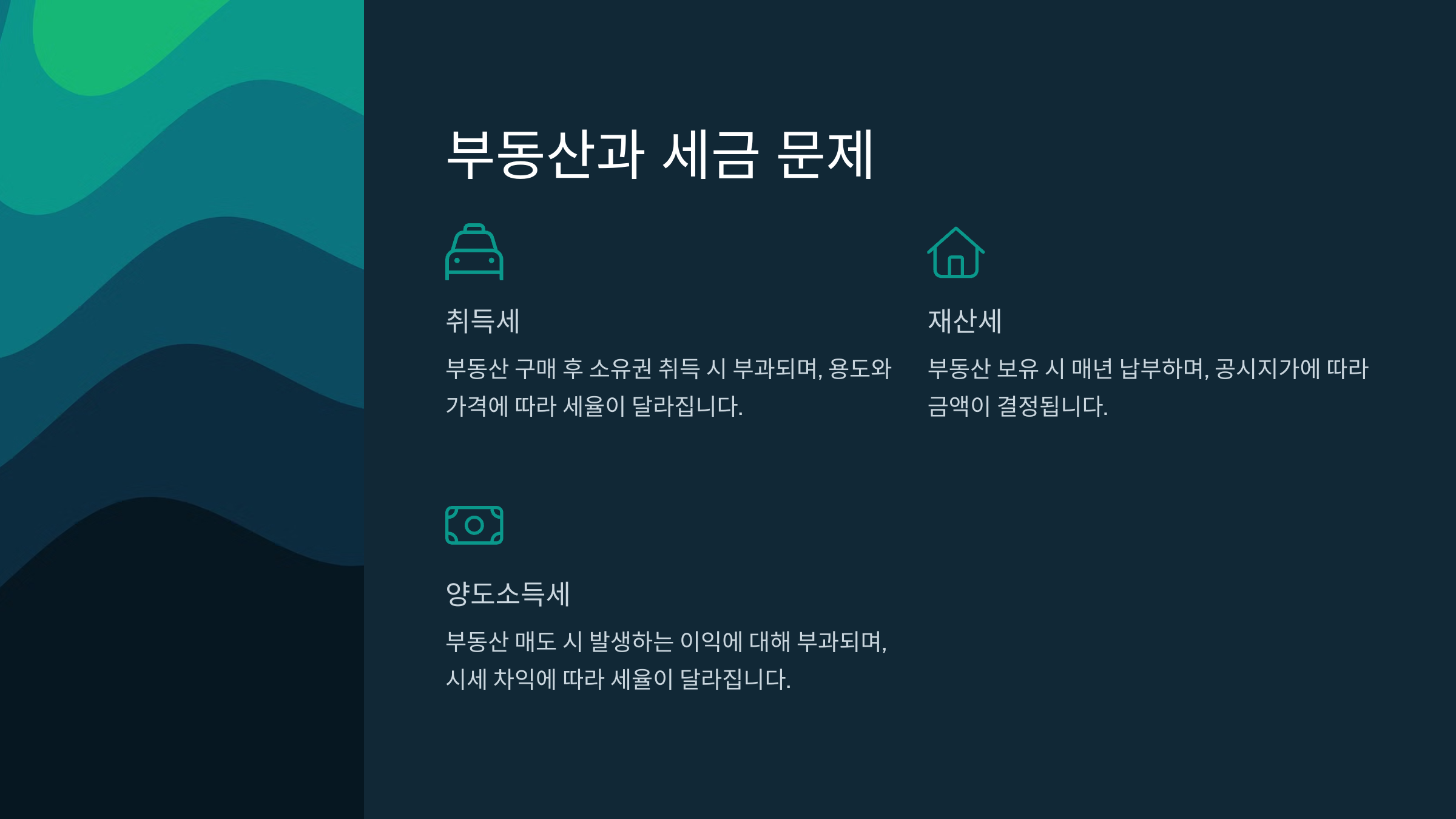 부동산 거래와 관련된 세금 문제는 복잡하고 어려운 부분 중 하나예요. 거래 시 부과되는 취득세, 보유 중 발생하는 재산세, 그리고 매도 시 발생하는 양도소득세 등 다양한 세금이 있어요. 이를 정확히 이해하지 못하면 예상치 못한 세금 폭탄을 맞을 수도 있답니다.