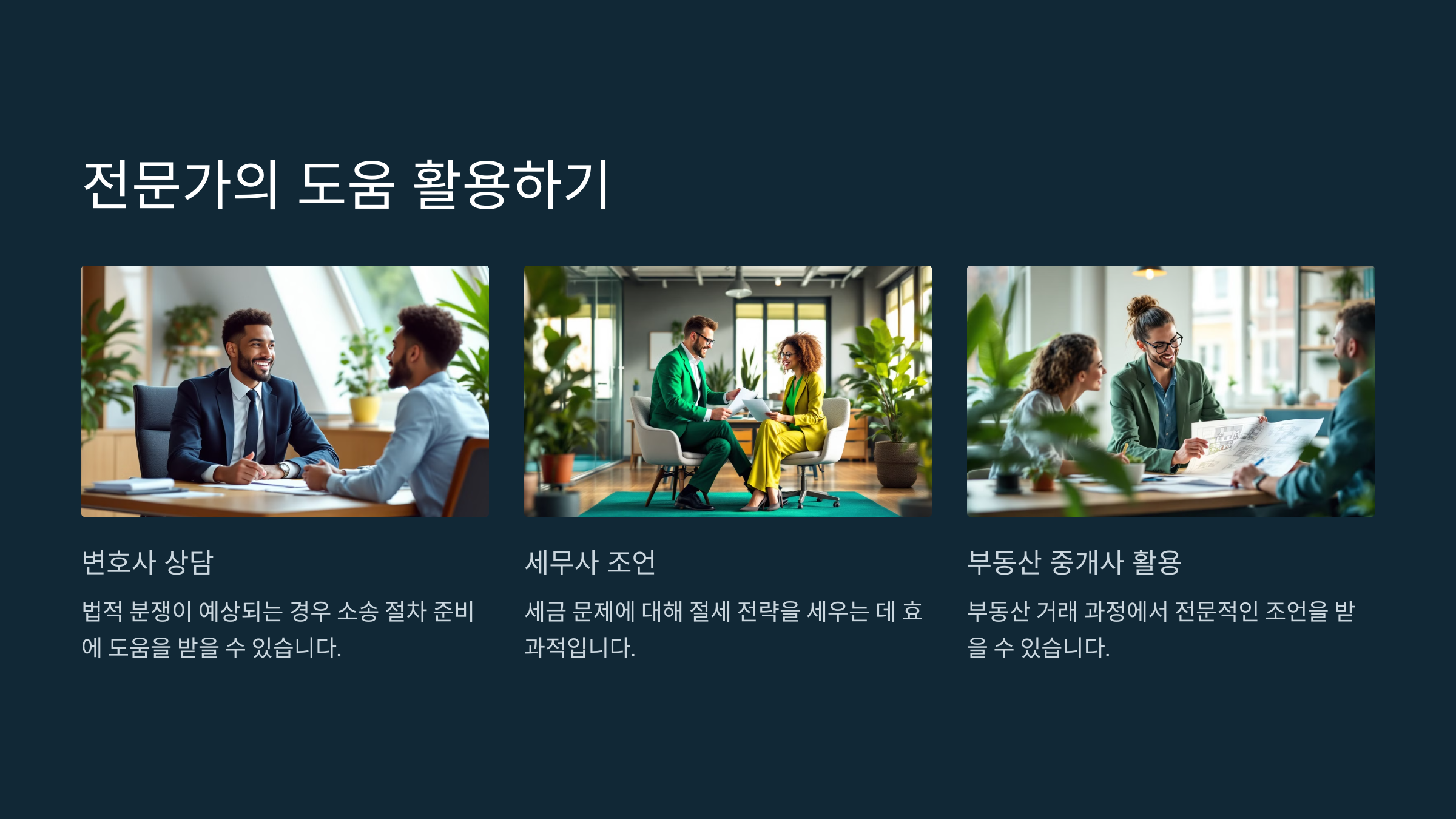 전문가의 도움을 받을 때는 변호사, 세무사, 부동산 중개사 등 각 분야의 전문가를 적절히 활용해야 해요. 각자의 전문성을 바탕으로 협력하면, 보다 안전하고 효율적으로 문제를 해결할 수 있답니다.