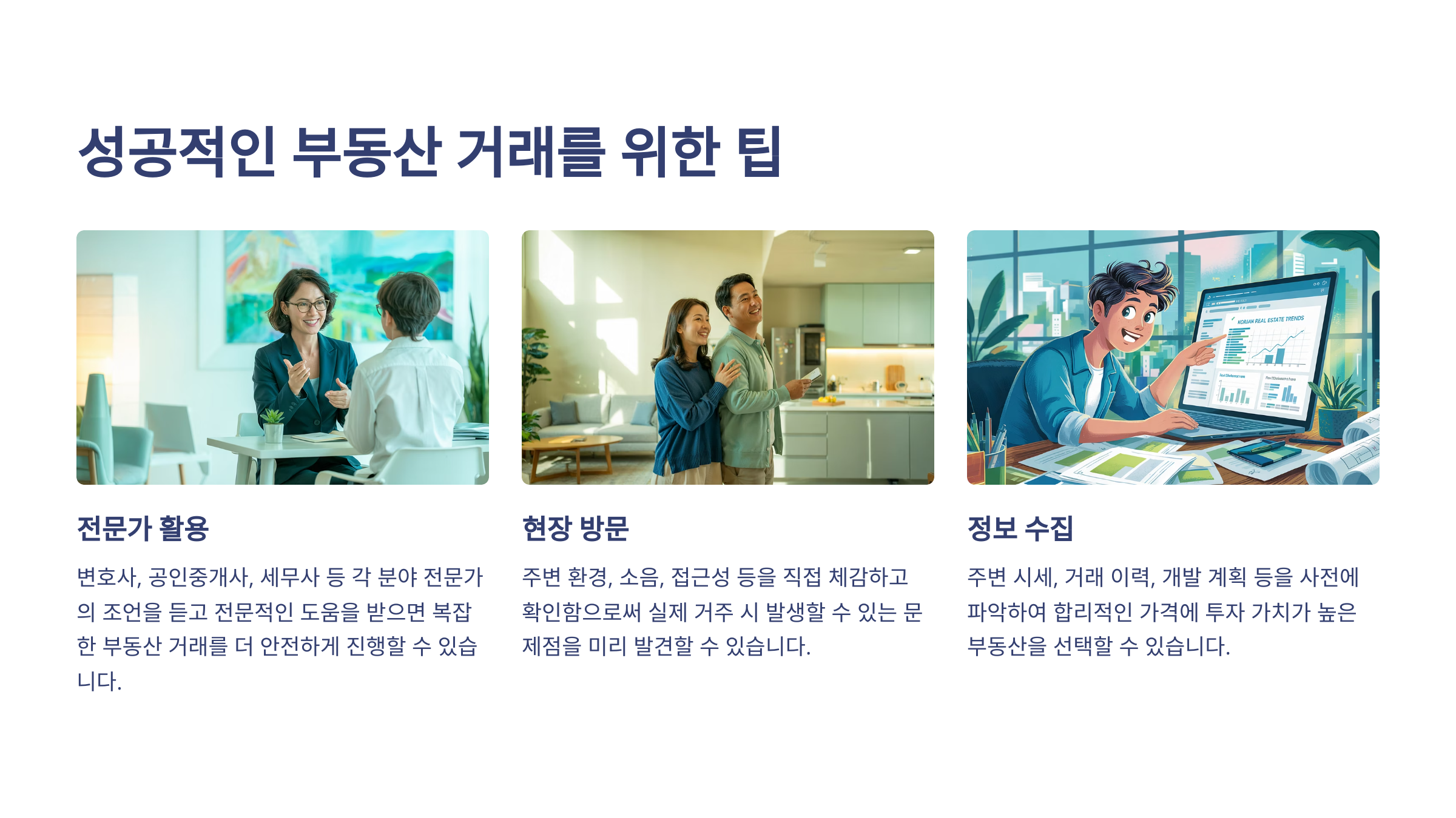 이 세 가지만 제대로 지켜도, 부동산 거래 성공 확률이 크게 높아진답니다! 작은 수고가 엄청난 차이를 만들어요. 📈