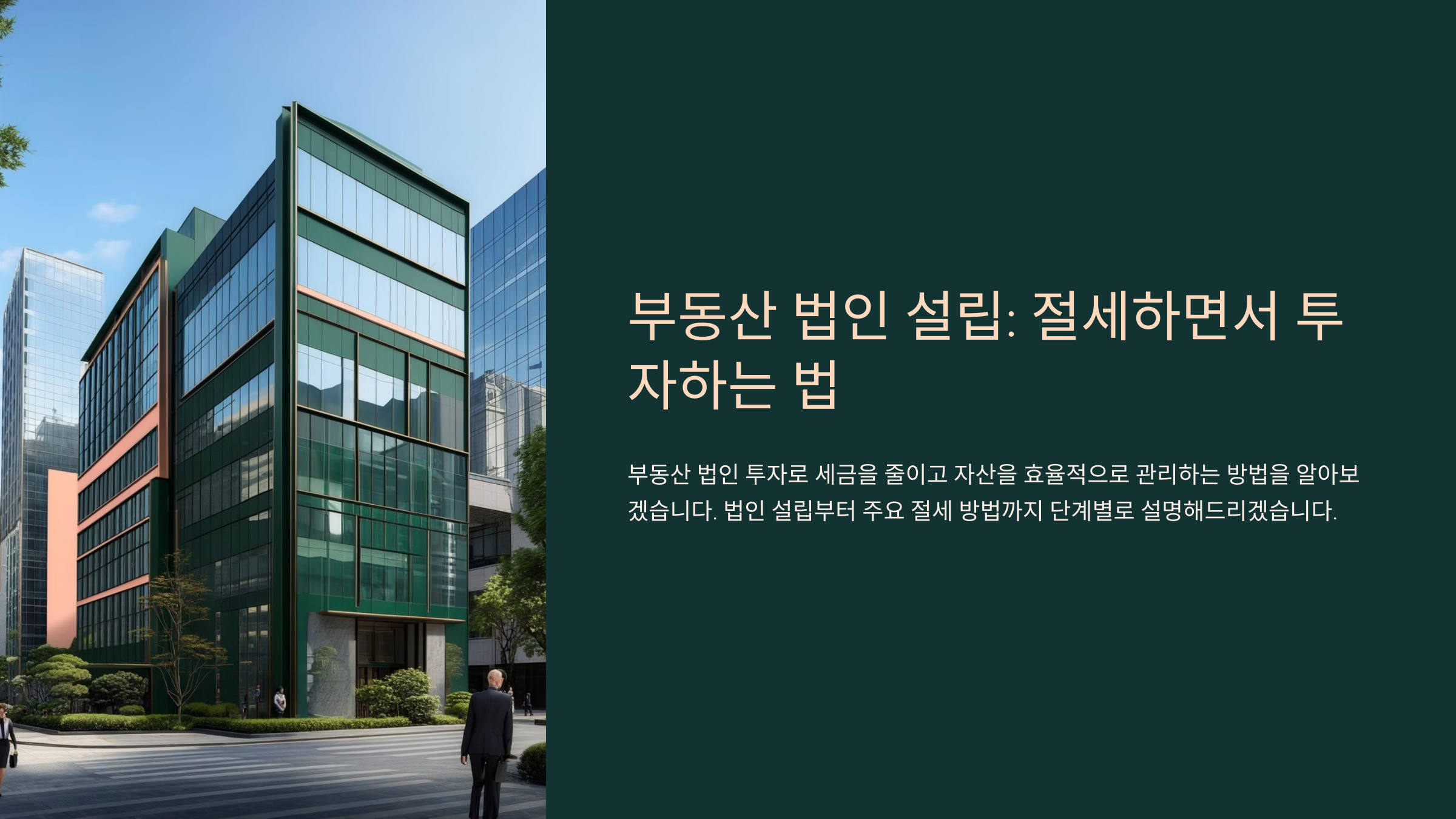 이번 글에서는 **부동산 법인 설립부터 주요 절세 방법까지** 단계별로 알려드릴게요. 그리고 법인과 개인 투자 수익을 비교한 표도 준비했으니 끝까지 확인해보세요! 😊