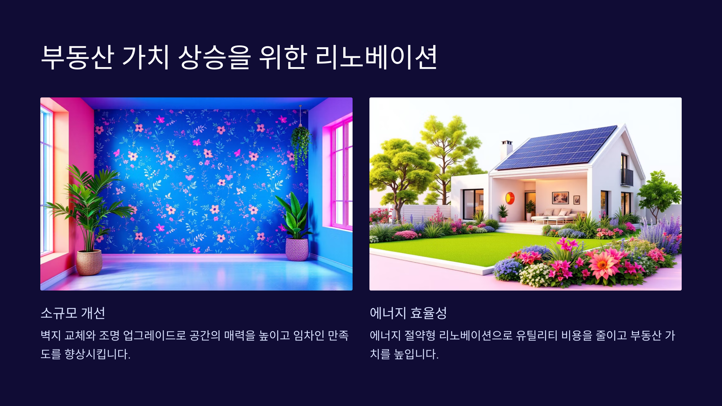두 번째로, 부동산의 가치를 높이기 위한 리노베이션은 장기적으로 높은 임대 수익을 보장하는 방법이에요. 오래된 건물의 경우, 소규모 리노베이션만으로도 임대료를 대폭 상승시킬 수 있는 기회가 많아요. 예를 들어, 벽지 교체, 조명 개선, 또는 화장실과 같은 공용 공간의 업그레이드는 임차인의 만족도를 높여줄 수 있어요.