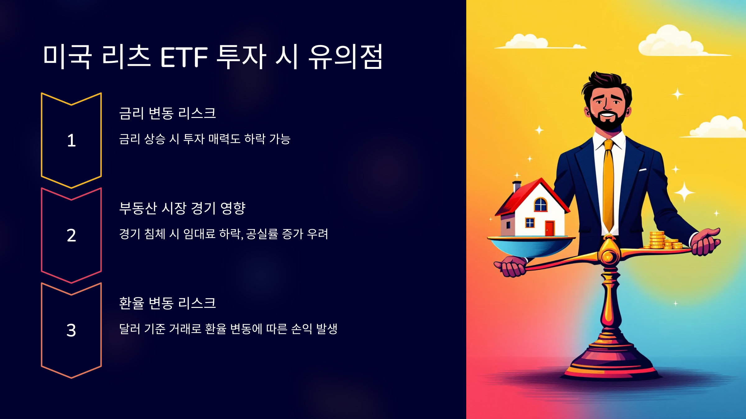 이제 미국 리츠 ETF 투자 시 유의해야 할 점도 살펴볼게요. ⚠️