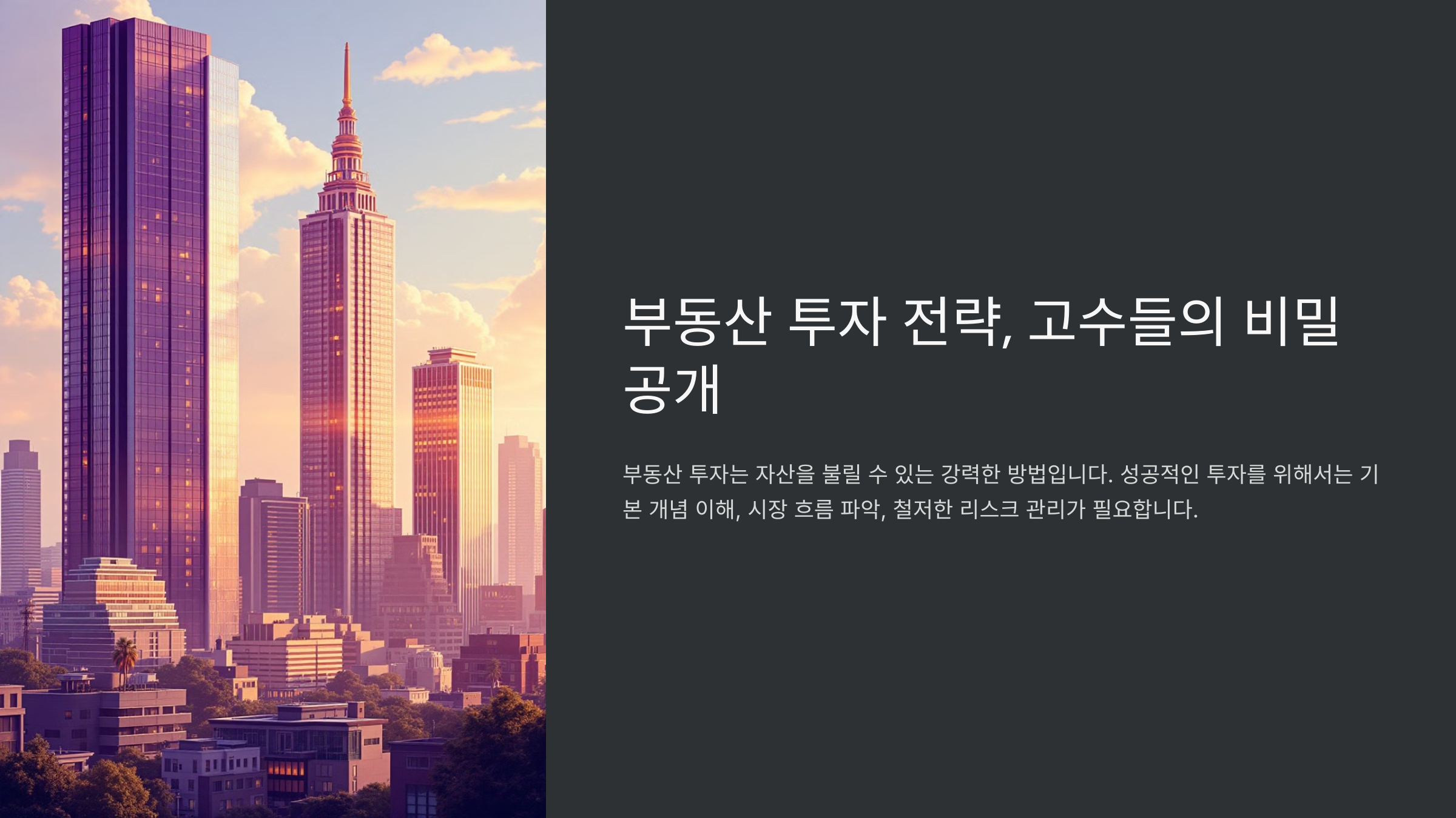어떤 부동산을 사야 할지, 시장의 변화를 어떻게 감지할지, 그리고 리스크를 줄이는 방법까지 체계적으로 알아보도록 해요!