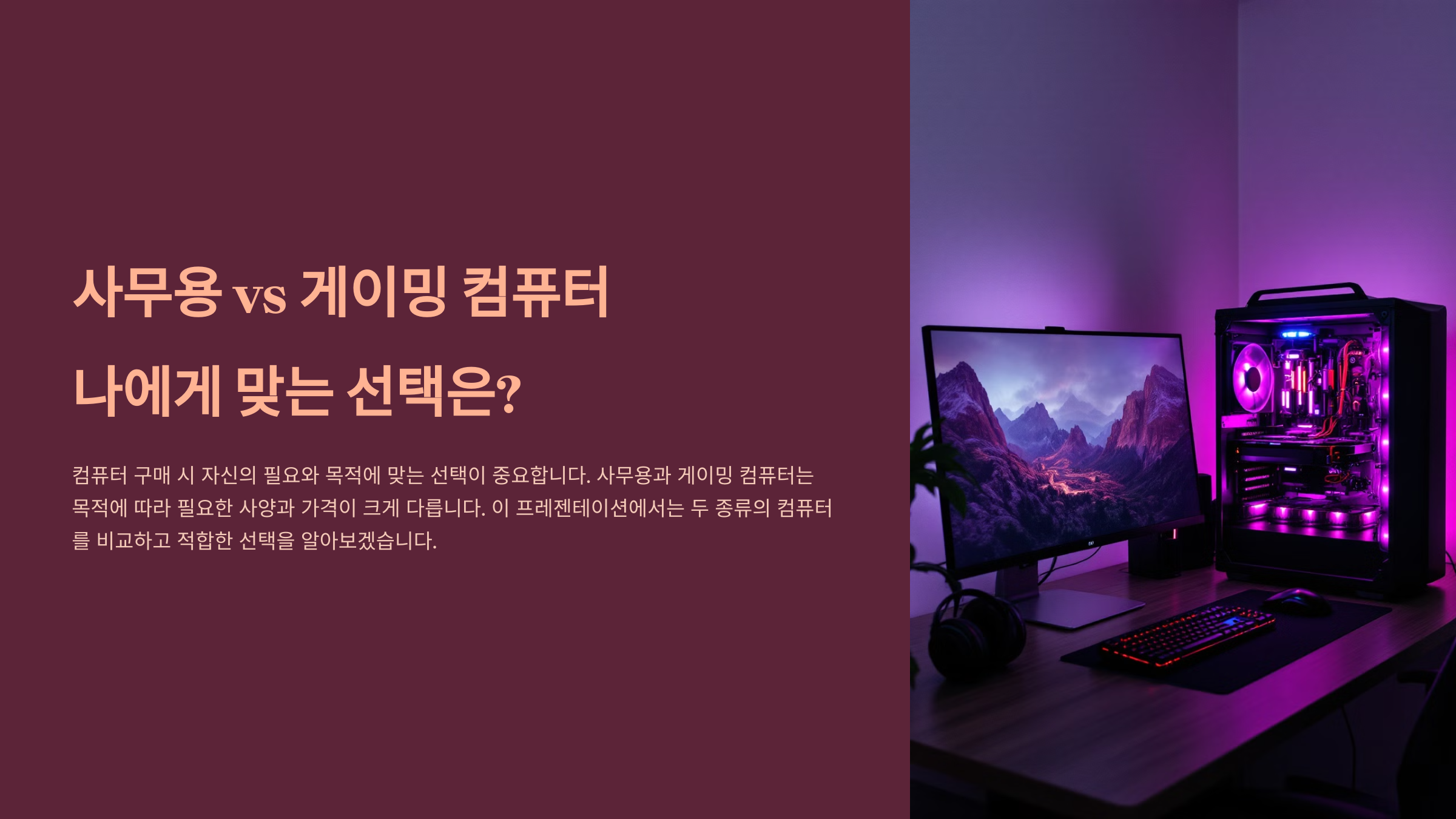 컴퓨터를 구매할 때는 자신의 필요와 목적에 맞는 선택이 중요해요. 특히 사무용 컴퓨터와 게이밍 컴퓨터는 목적에 따라 필요한 사양과 가격이 크게 다르답니다. 이 글에서는 두 가지 종류의 컴퓨터를 비교해보고, 어떤 선택이 더 적합한지 알아볼 거예요.