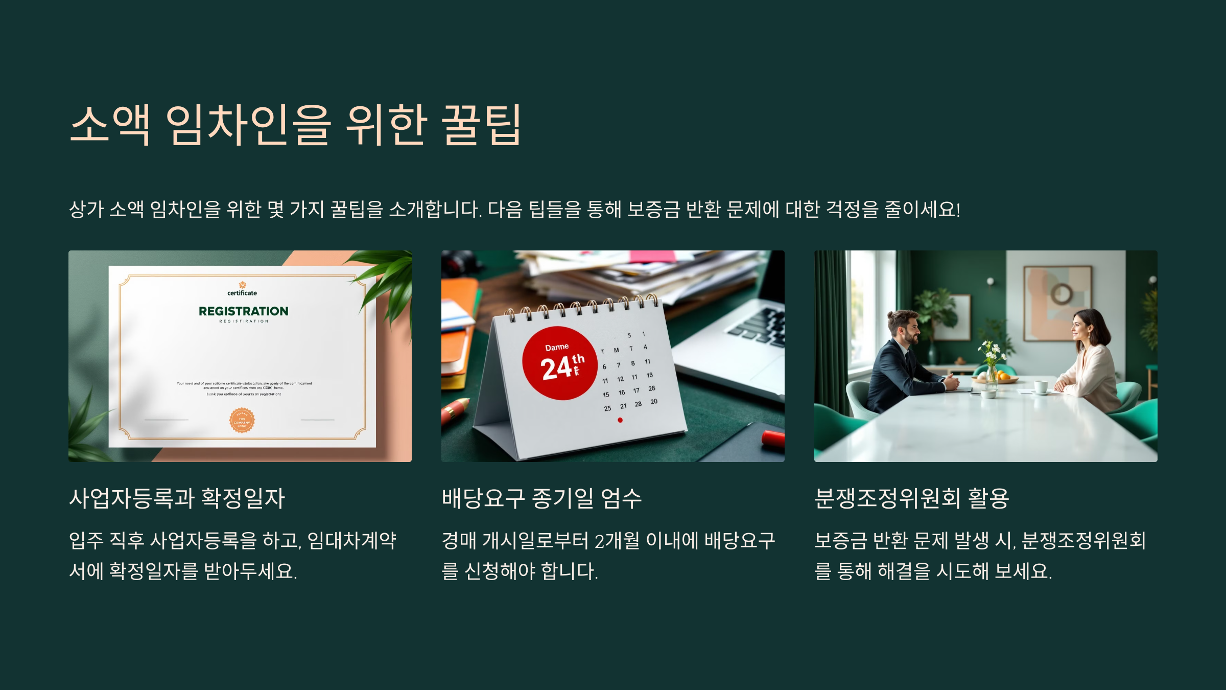✔️ 5. 상가건물임대차분쟁조정위원회 활용: **보증금 반환 문제**가 발생하면 **상가건물임대차분쟁조정위원회**를 통해 **신속하고 저렴하게** 해결할 수 있어요.