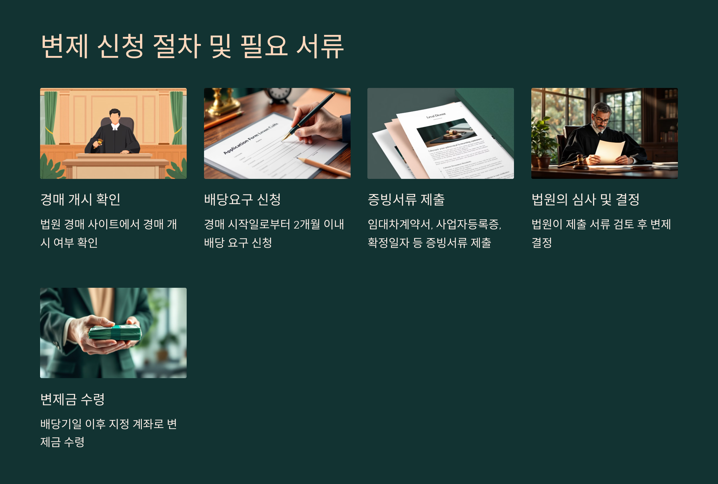 | 5. 변제금 수령 | 배당기일 이후 지정 계좌로 변제금 수령 |
