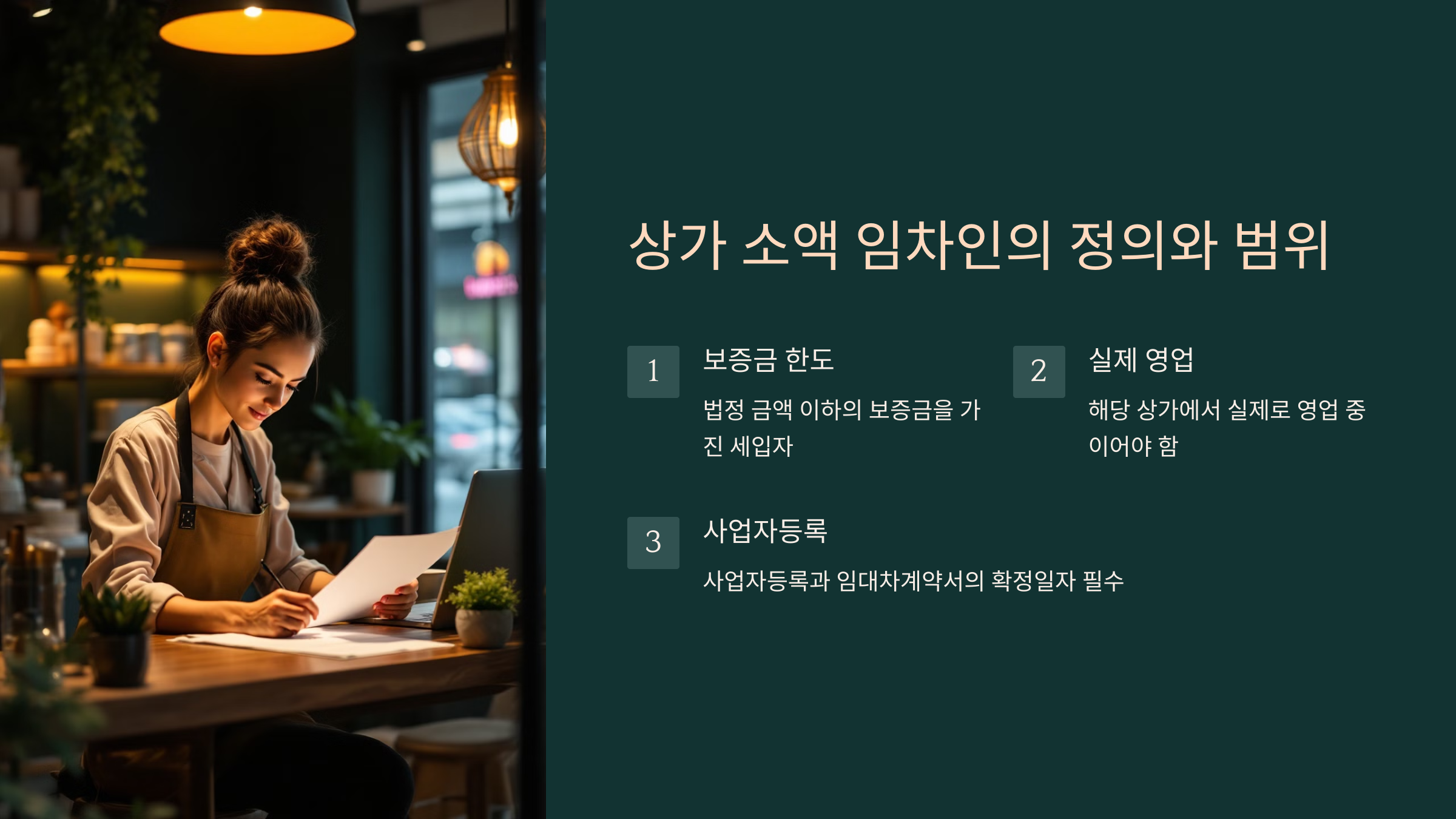 ✔️ 2. 실제로 상가에서 영업 중이어야 함: 해당 상가에서 **실제로 영업**을 해야 하며, 단순히 **계약만 체결**한 경우에는 적용되지 않아요.