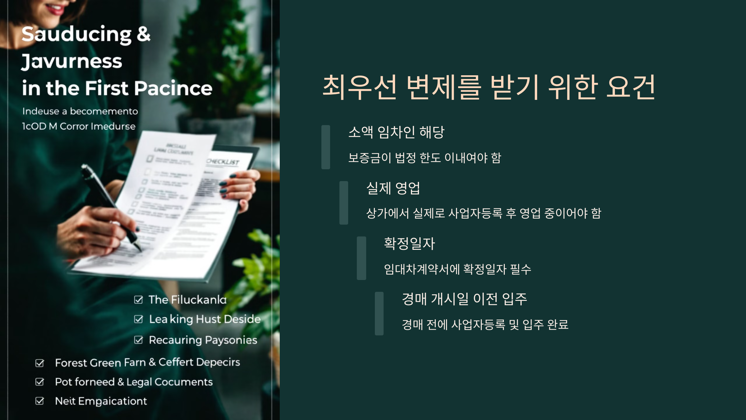 ✔️ 1. 사업자등록과 확정일자는 반드시 받을 것: 상가에 입주한 직후 **즉시 사업자등록**을 하고, **임대차계약서에 확정일자**를 받아야 **우선변제권**이 생겨요.