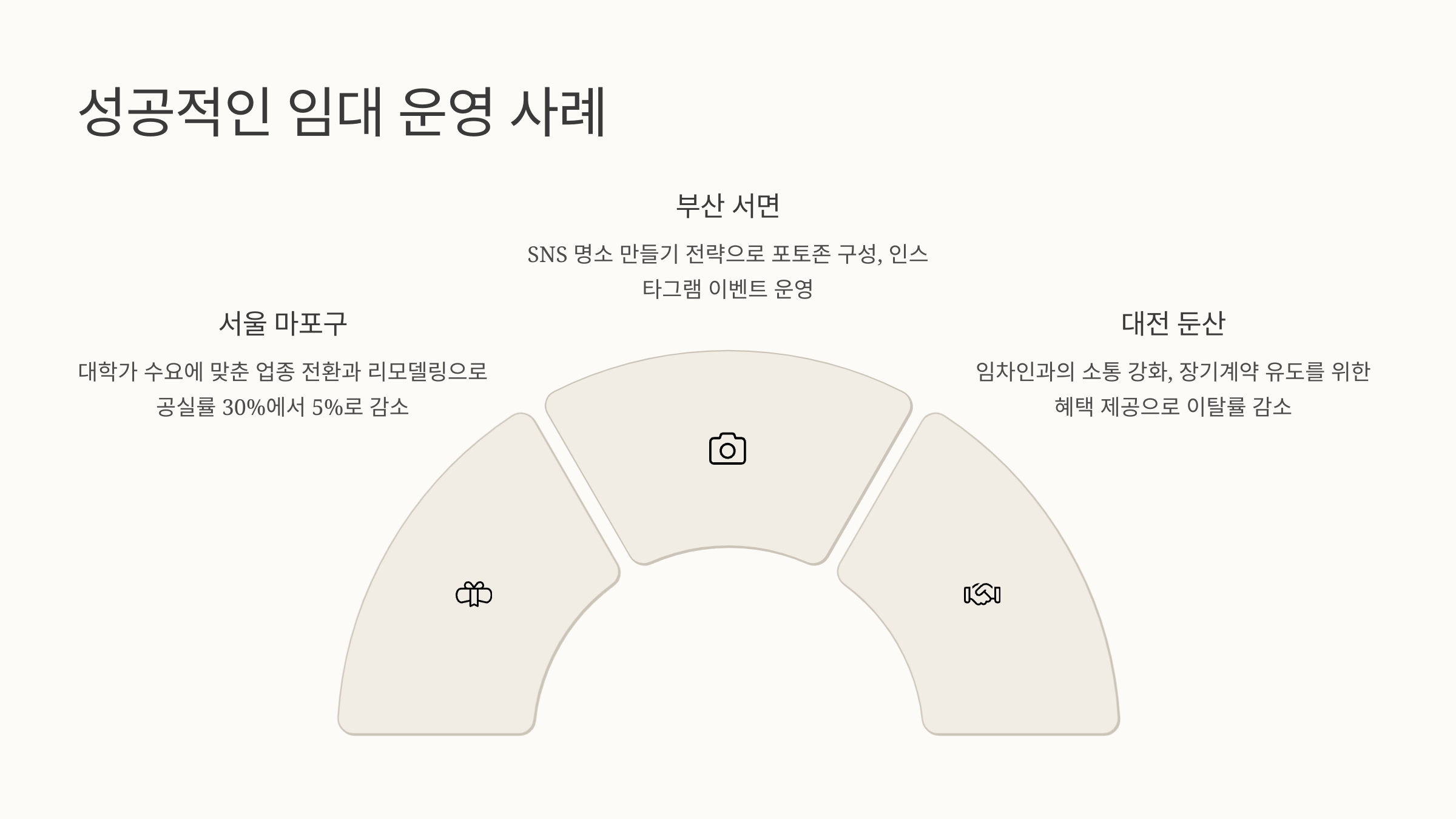 성공한 건물주들의 공통점은 ‘임차인과의 소통’에 있어요. 불편한 점을 개선해주고, 장기계약 유도를 위한 혜택을 주면서 안정적인 수익 구조를 만들었어요. 단기적인 수익보다는 상권 활성화에 집중하는 것이 장기적으로 더 높은 수익률을 가져온다는 걸 보여주는 사례들이에요.