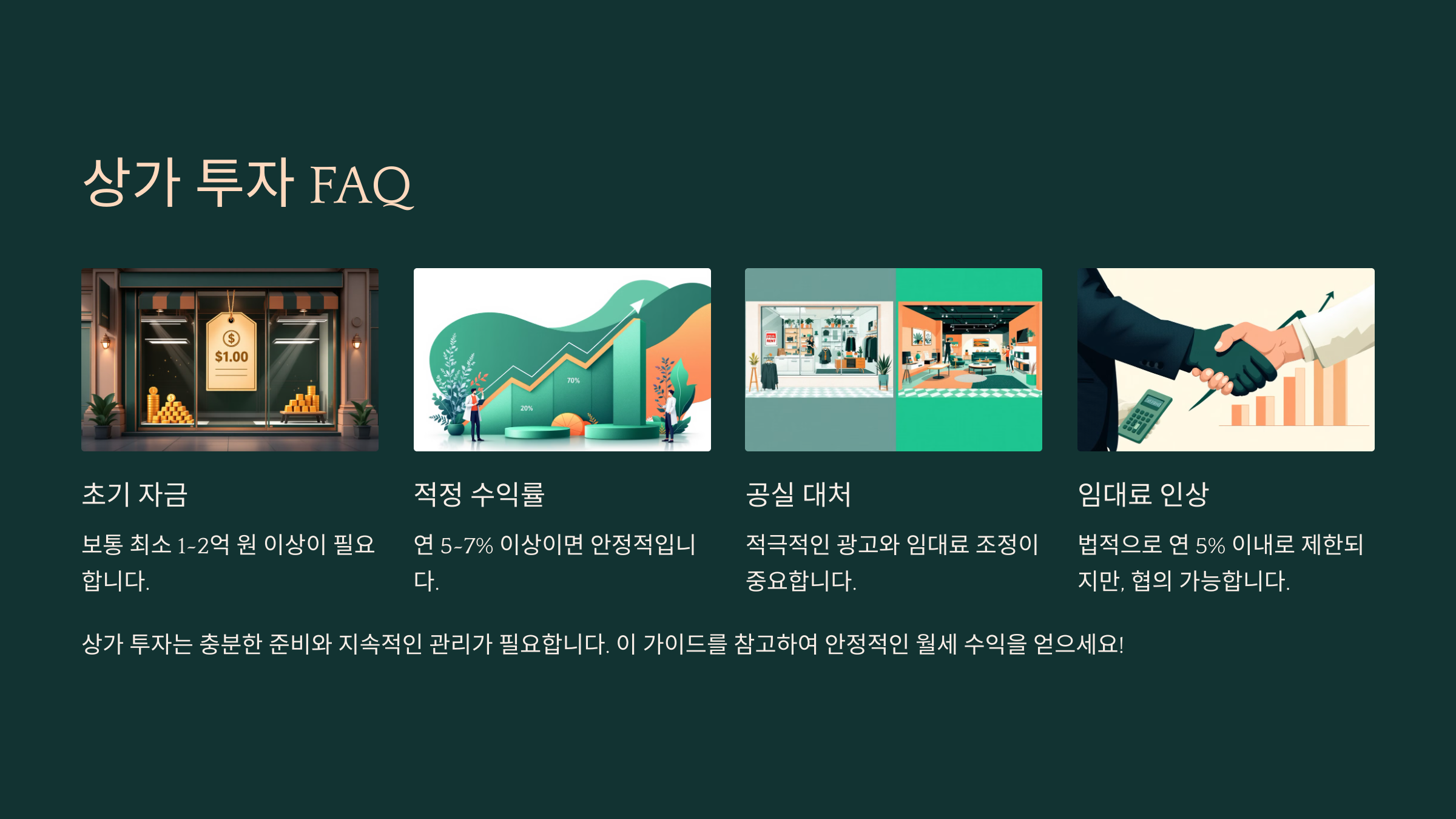 임대 관리를 잘하면 공실 위험을 줄이고, 안정적인 수익을 확보할 수 있어요. 좋은 임차인과 함께 오래가는 상가 운영을 위해 철저한 관리가 필요하답니다! 🏢💡