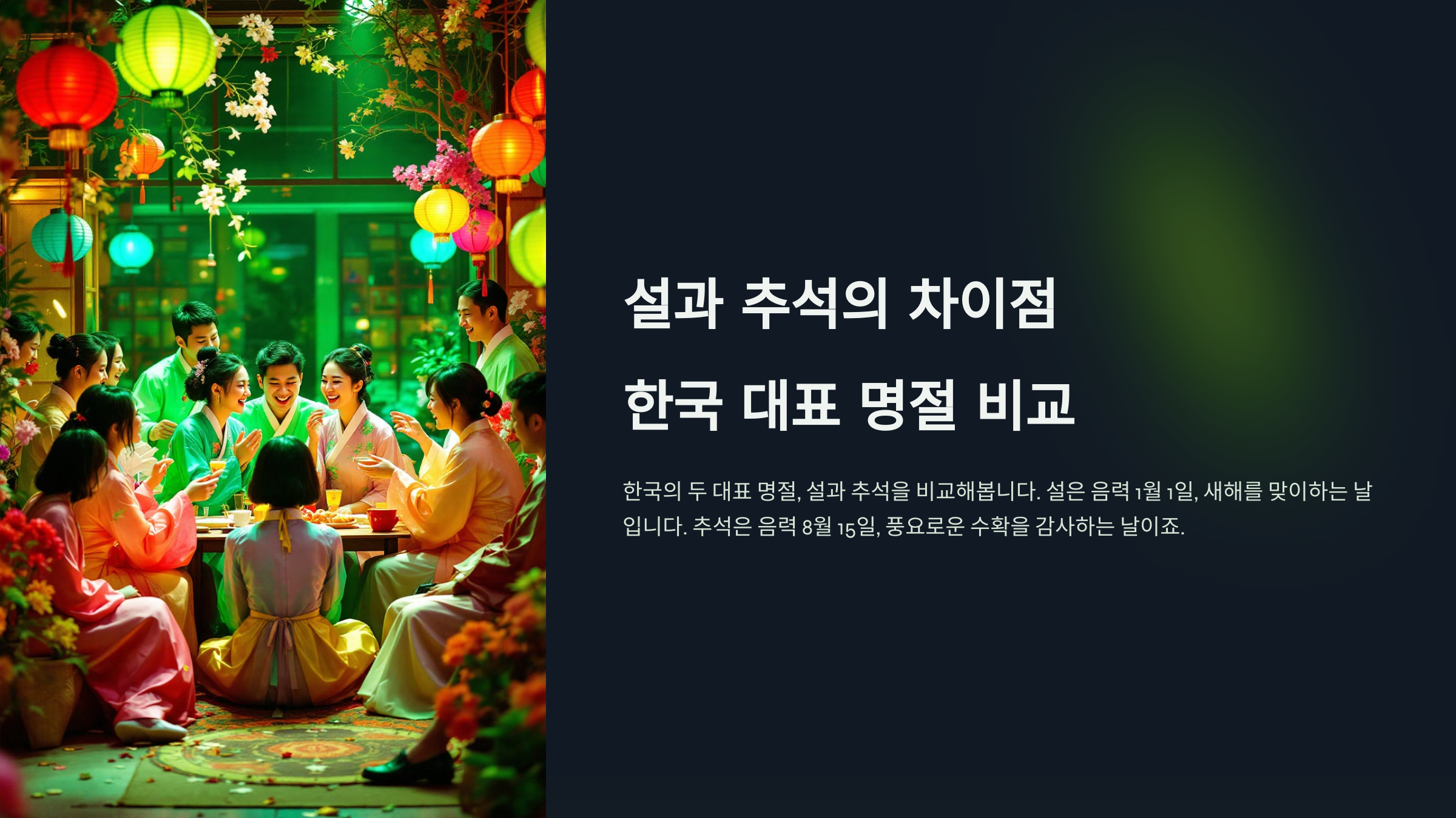 한국에는 전통적으로 두 개의 대표적인 명절이 있어요: 설과 추석. 이 두 명절은 각각 겨울과 가을에 열리며, 각각의 역사적 배경과 의미, 그리고 풍습이 매우 다르답니다. 설은 음력 1월 1일로, 새해를 맞이하며 시작을 축하하는 날이에요. 반면 추석은 음력 8월 15일로, 가을의 풍요로운 수확을 감사하는 명절이랍니다.