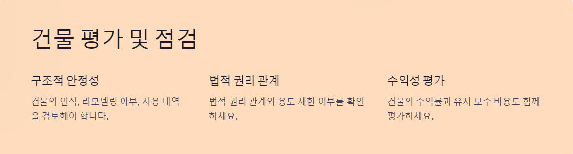 건물의 수익률과 유지 보수 비용도 함께 평가하세요.