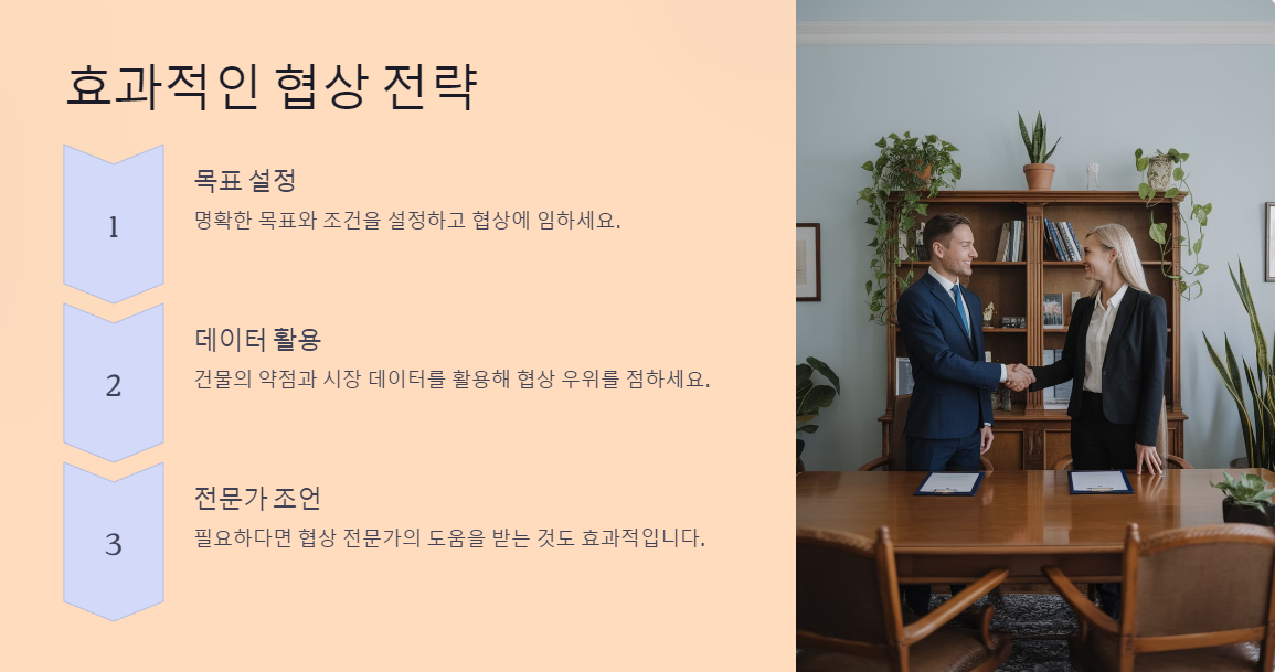 건물의 약점과 시장 데이터를 활용해 협상 우위를 점하세요.