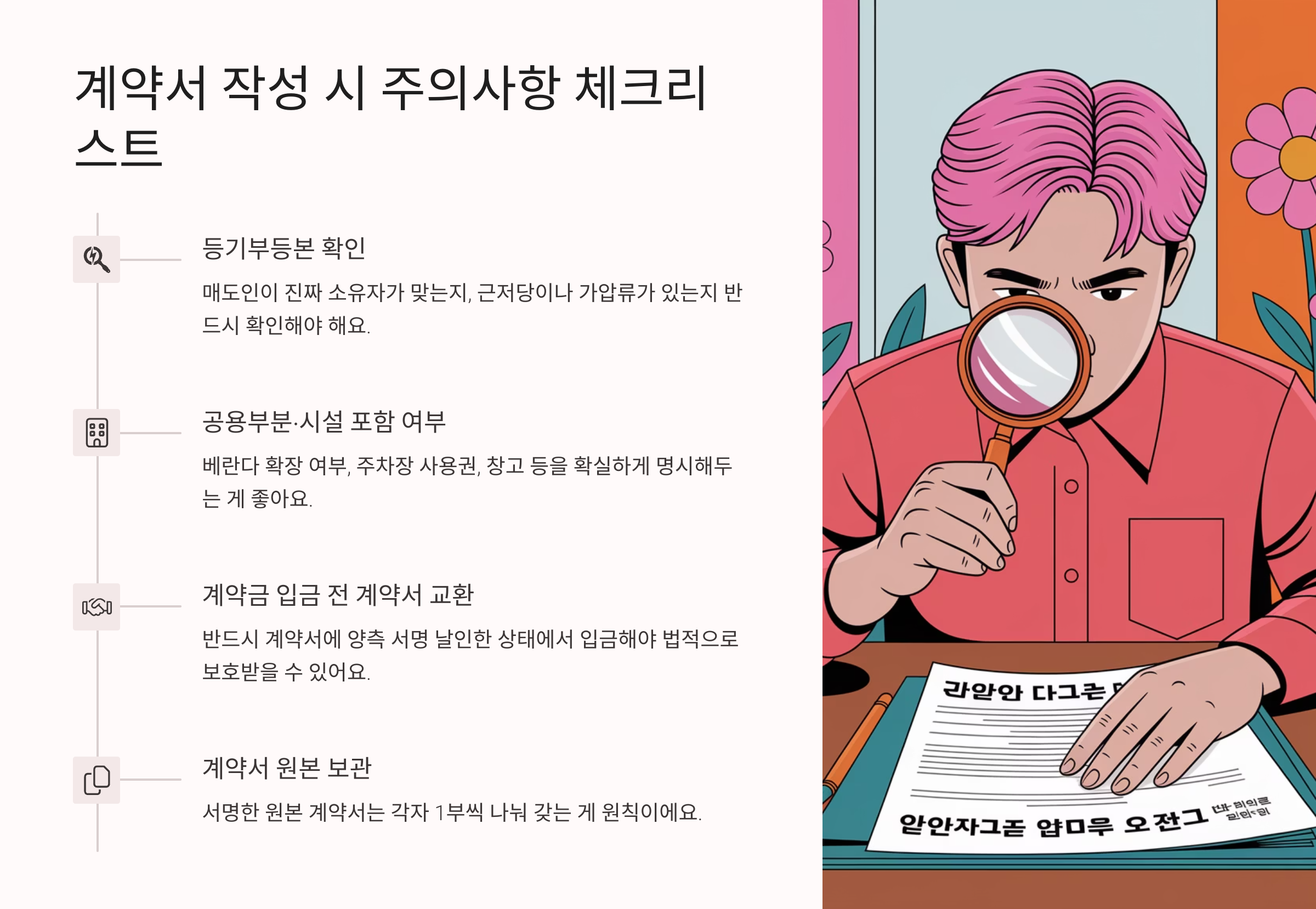 아파트 계약서를 쓸 때 중요한 항목은 다 적었더라도, 실제로 작성 과정에서 놓치기 쉬운 실수들이 있어요. 특히 처음 계약을 해보는 분들이 많이 헷갈려하는 부분들이 있거든요. 그래서 이번엔 꼭 체크해야 할 실수 방지 포인트들을 정리해드릴게요.