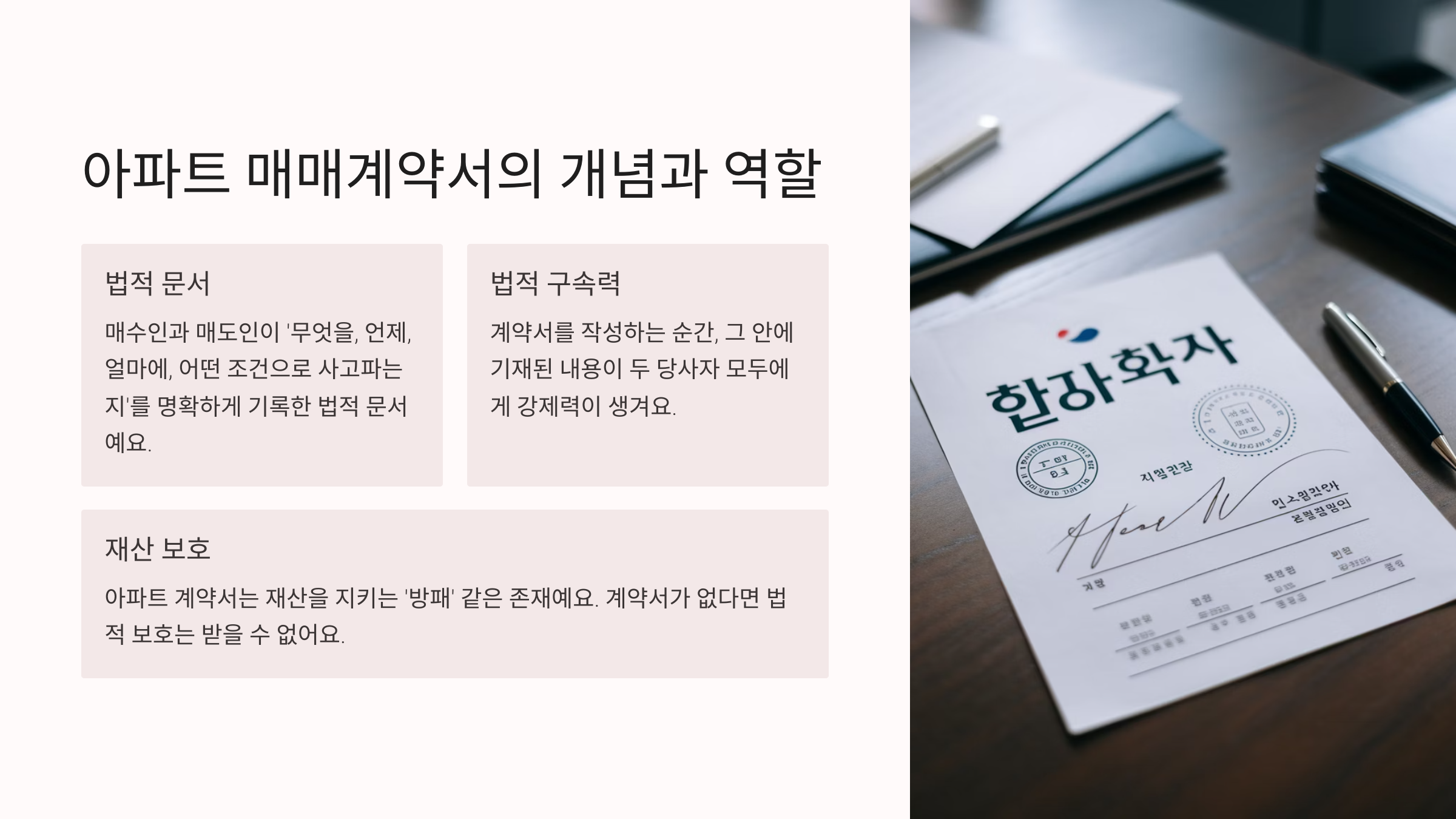 아파트를 계약한다는 건 단순한 종이 한 장에 서명하는 일이 아니라, 수억 원의 자산을 주고받는 매우 중요한 법률행위예요. 한 번 잘못 작성하면 소송, 분쟁, 심지어 전 재산 손해로 이어질 수 있답니다. 그래서 계약서는 ‘꼼꼼하게’ 작성해야 해요.