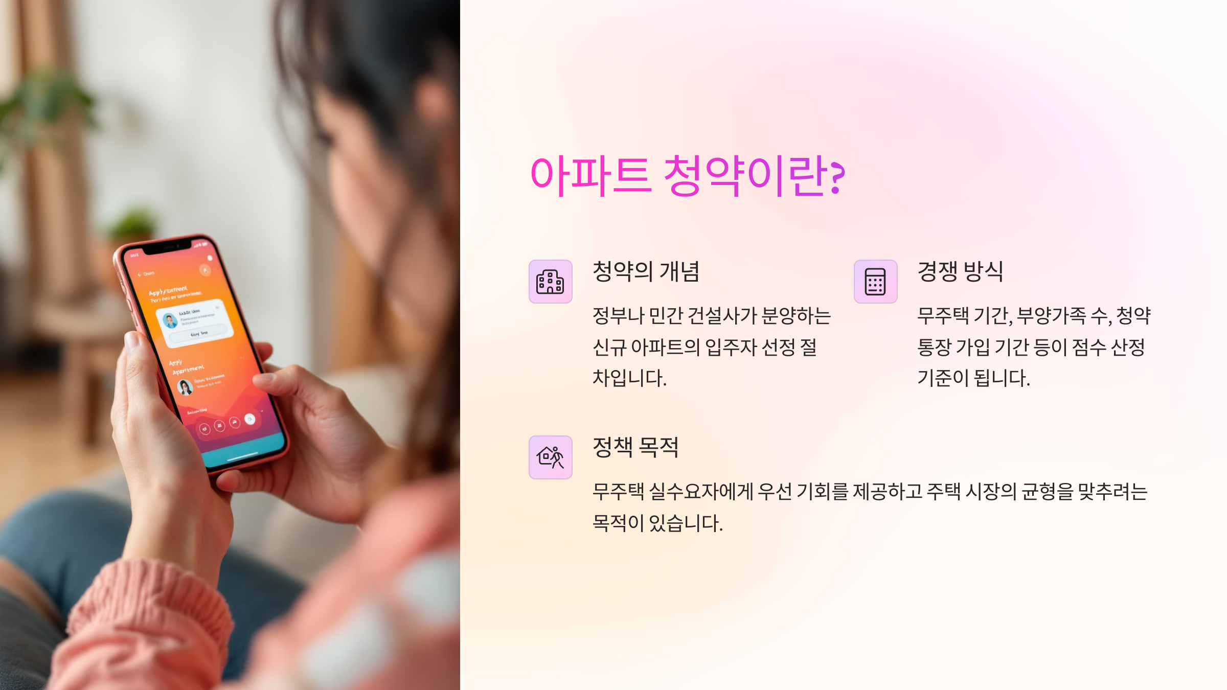 처음 들으면 어렵게 느껴질 수 있지만, 차근차근 준비하면 누구나 도전할 수 있어요. 아파트 청약은 단순한 추첨이 아니라 전략이 필요한 과정이에요!