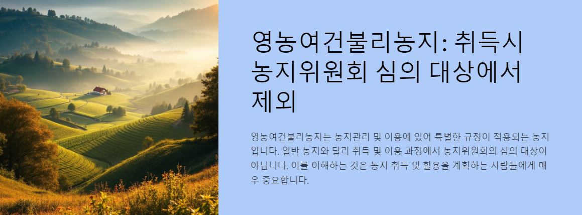 이 글에서는 영농여건불리농지의 정의, 특징, 취득 요건, 심의 대상 제외 이유, 활용 방법 등을 상세히 살펴보겠습니다.